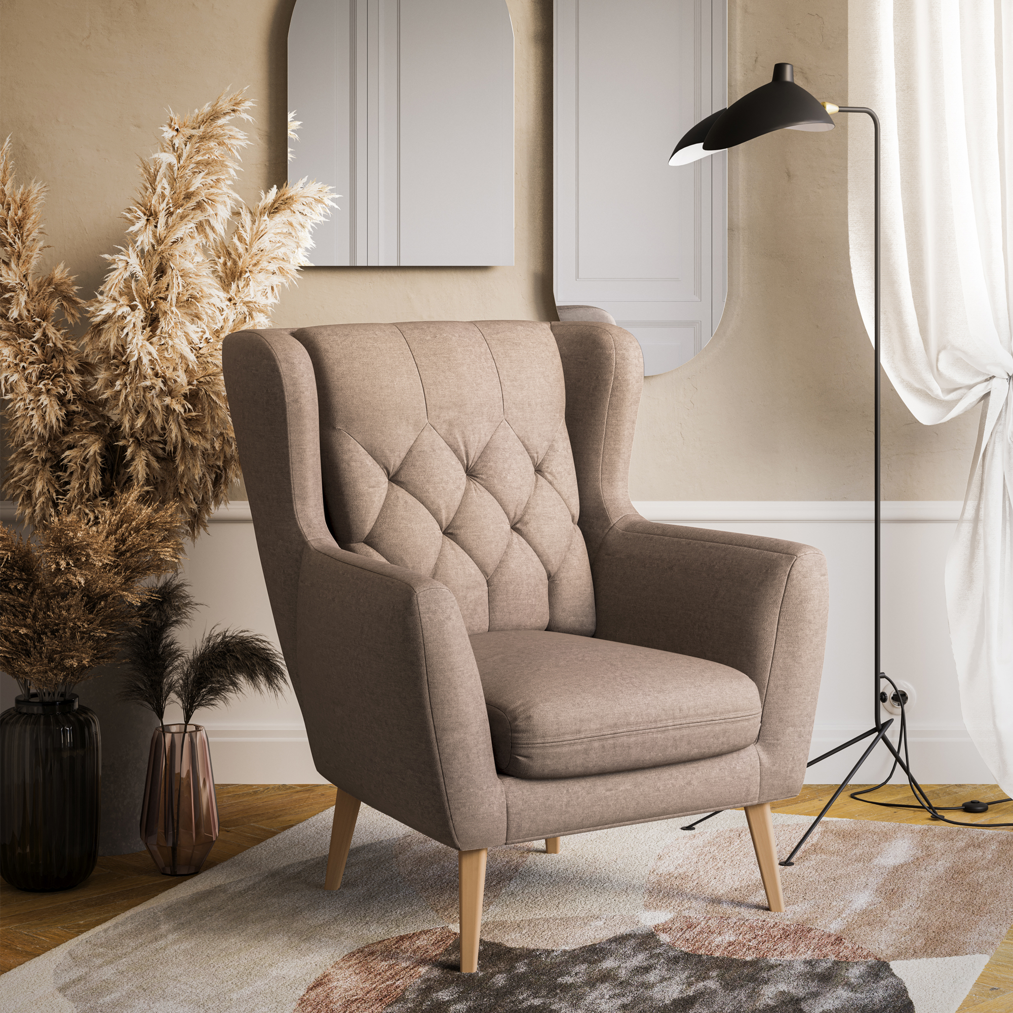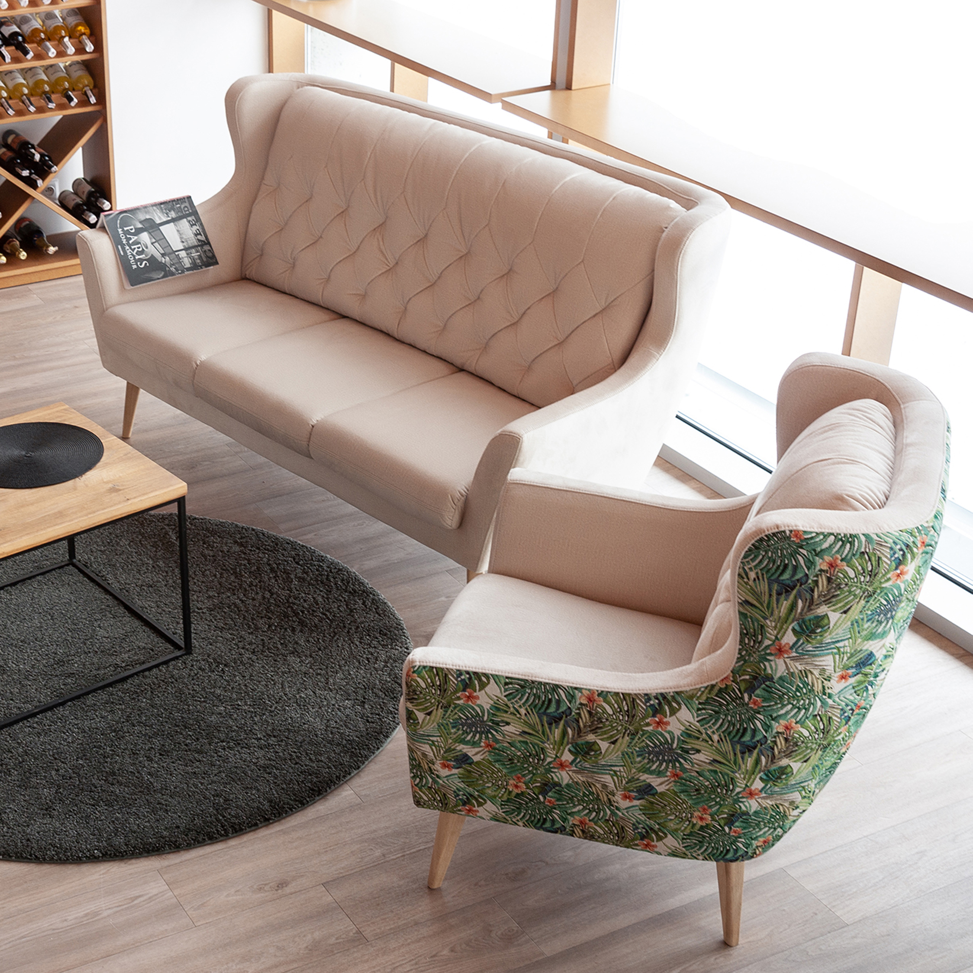 Fotel Aria to elegancki, klasyczny mebel zaprojektowany z myślą o komforcie. Jego siedzisko wypełnione jest wysokiej jakości pianką HR, z dodatkową wyściółką z miękkiej włókniny silikonowej, co zapewnia wyjątkową wygodę. Model ten dostępny jest w różnych tkaninach i w 9 różnych wybarwieniach drewnianych nóżek. Możliwość wzbogacenia zestawu o sofę 2 osobową lub 3-osobową i puf z tej samej kolekcji, czyni go doskonałym wyborem do stylowych wnętrz.
