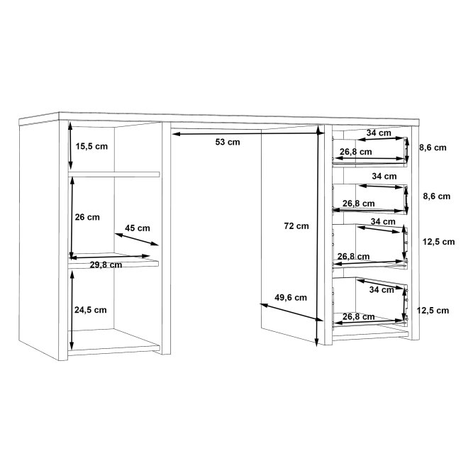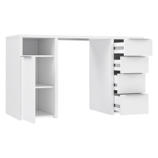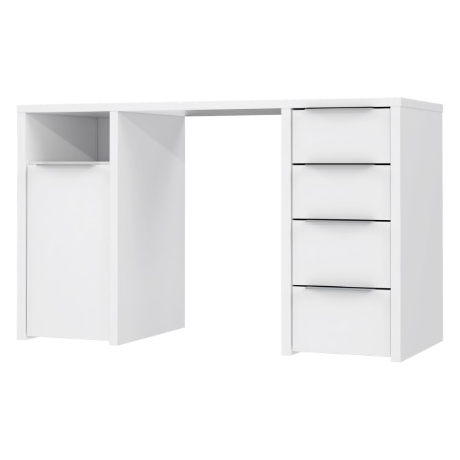 Nowoczesne biurko będzie idealnie pasować do każdego stylowego gabinetu oraz pokoju młodzieżowego. Wykonany w Białym dekorze odświeży każde pomieszczenie, nada mu stylu oraz doskonale dopasuje się do każdej aranżacji wnętrz.