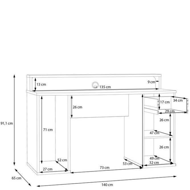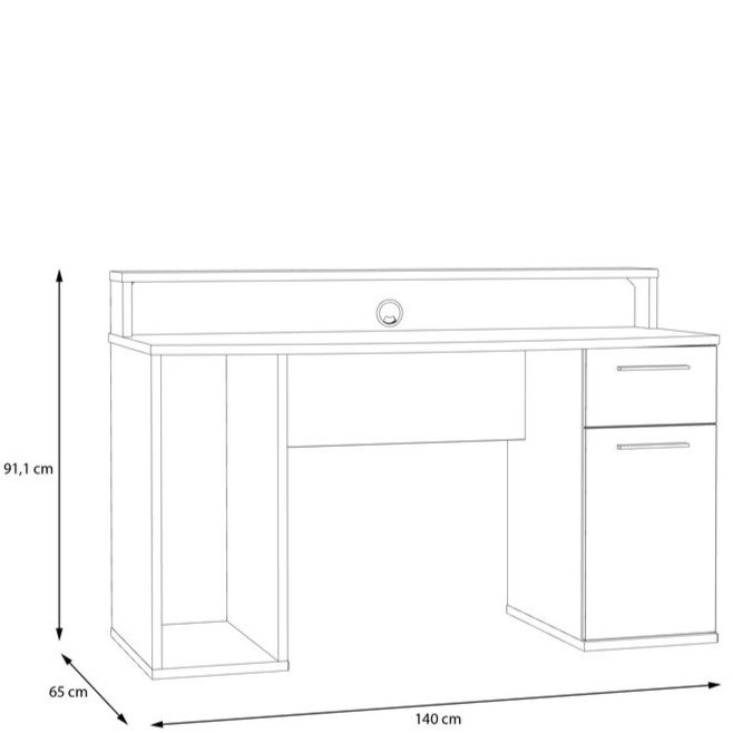 Wymiary: 140 cm szerokości, 65 głębokości oraz 91,1 cm wysokości