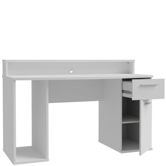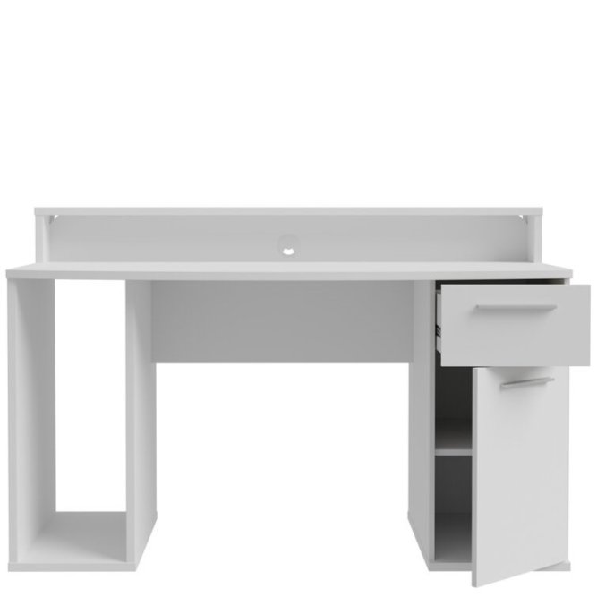 Białe biurko gamingowe 140 cm z oświetleniem RGB to mebel stworzony z myślą o miłośnikach gier. Biurko AYO zachwyci przestronnym blatem na klawiaturę i myszkę, ale też lampkę i inne gadżety, np. słuchawki. Na nadstawce możesz ustawić nawet dwa monitory, a jednostkę komputera w dedykowanej przestrzeni. Do dyspozycji masz podręczną szufladę i szafkę na biurowe drobiazgi. Ponadczasowa, biała kolorystyka wpisze się w aranżacje pokoju nastolatka i domowe biuro w nowoczesnym stylu. Wbudowane oświetlenie RGB dopełni pokój gamera.