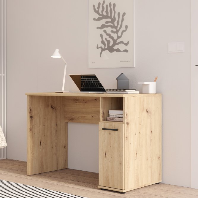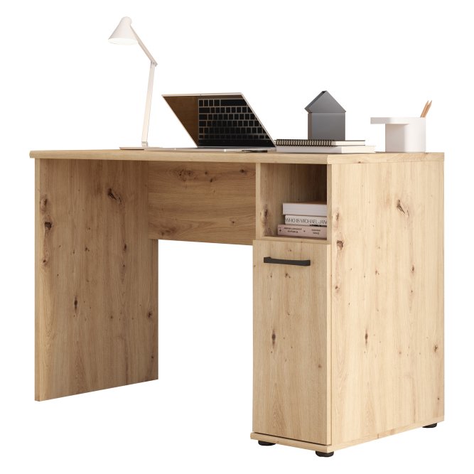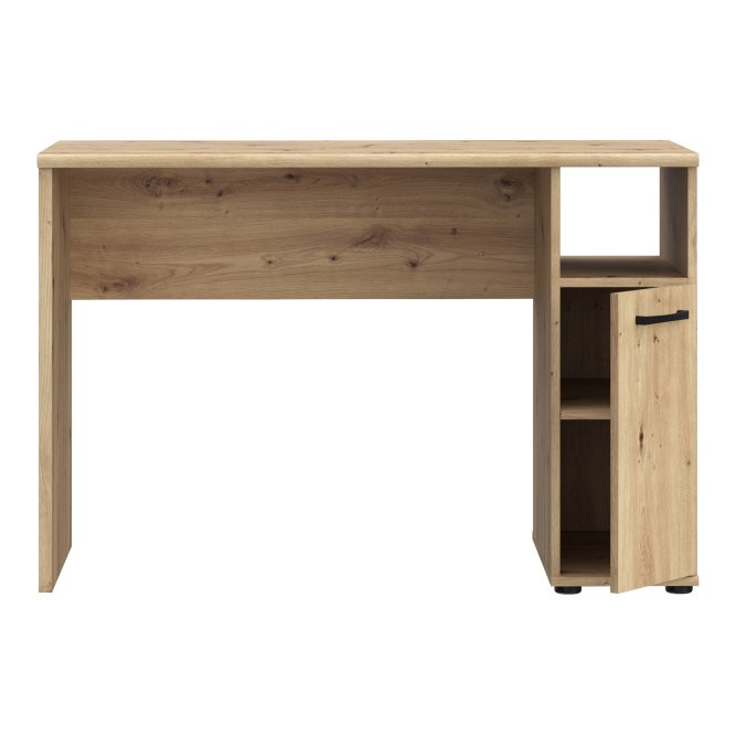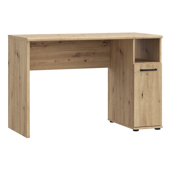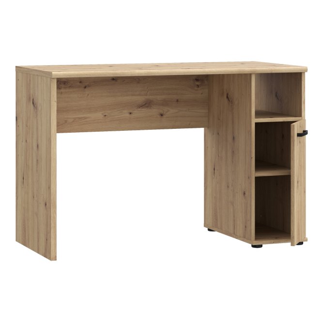 Biurko w stylu nowoczesnym idealnie sprawdzi się w domowym biurze. Wykonane zostało w dekorze Dąb Artisan imitującym naturalne usłojenie drewna. Posiada odpowiednio dużo miejsca do przechowywania przyborów biurowych.