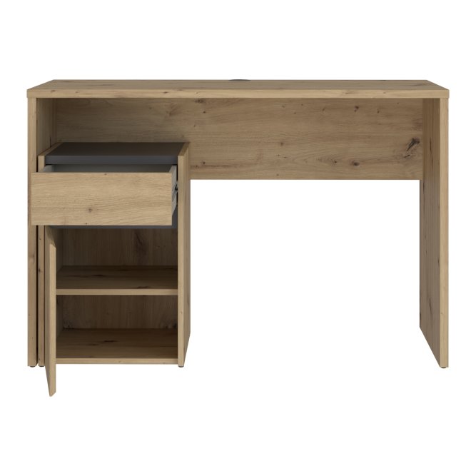 Biurko o szerokości 110 cm z kolekcji MODULTRICK to praktyczny i funkcjonalny mebel niezastąpiony w pokoju młodzieżowym i domowym biurze. Ze względu na wymiary, możesz je ustawić nawet w małej strefie nauki i pracy, wydzielonej w sypialni lub salonie. Z pewnością docenisz wygodny blat, na którym nie zabraknie miejsca ani na laptopa i narzędzia pracy, ani na akcesoria biurowe, takie jak lampka czy organizer na długopisy. W przechowywaniu przedmiotów sprawdzi się szafka oraz podręczna szuflada.