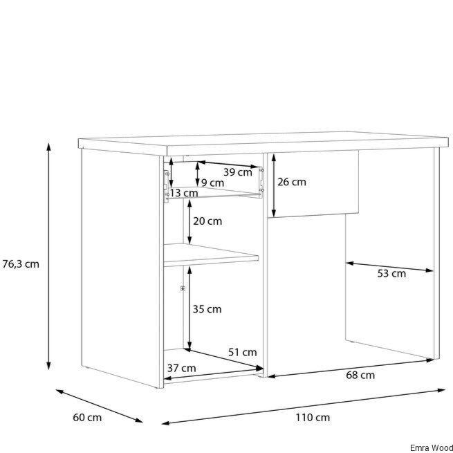 • Biurko zostało wyposażone w pojemną szufladę i szafkę na podręczniki