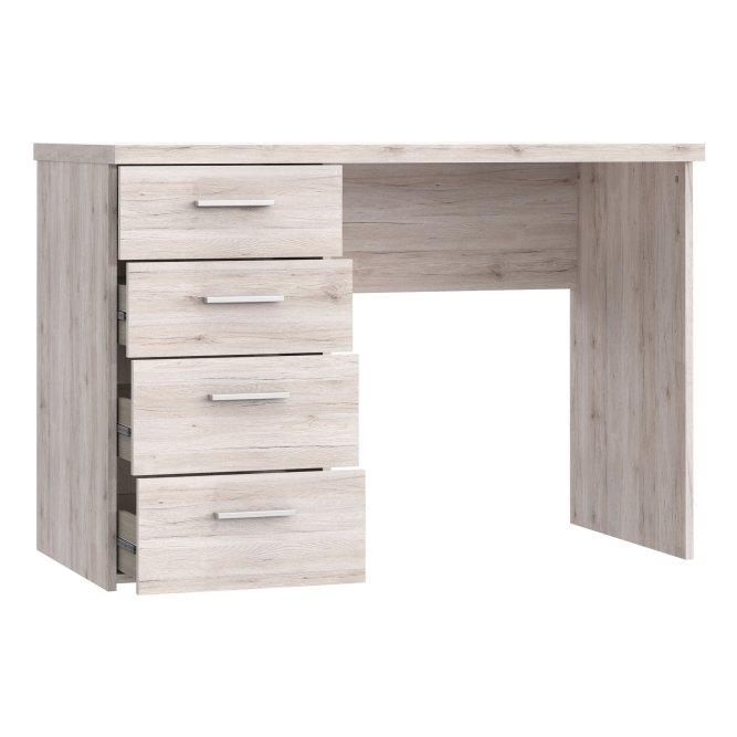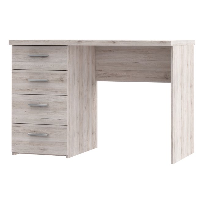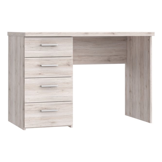 Biurko w dekorze Dębu Piaskowego odwzorowującego naturalne drewno doskonale sprawdzi się w aranżacji domowego biura oraz pokoju młodzieżowego. Pojemne szuflady umożliwią przechowywanie dużej ilości akcesoriów biurowych, dokumentów czy książek.
