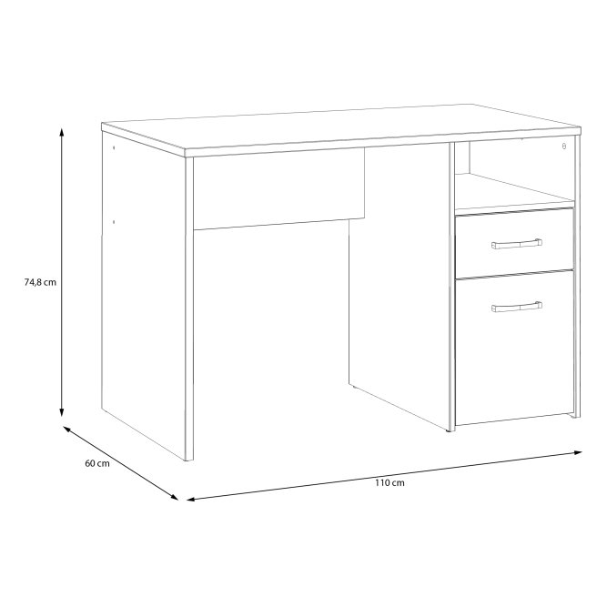 Biurko CULGOA dopełni aranżację domowego biurka lub kąciku do pracy w sypialni lub salonie. Wyposażone w szufladę i szafkę, tworzy miejsce nie tylko do pracy czy nauki, ale też do przechowywania. Na przestronnym blacie nie zabraknie miejsca na laptop, notatnik, słuchawki i lampkę. Ponadczasowy dekor Dąb Artisan ułatwi zestawienie biurka CULGOA z innymi meblami, dostępnymi w ofercie FORTE.