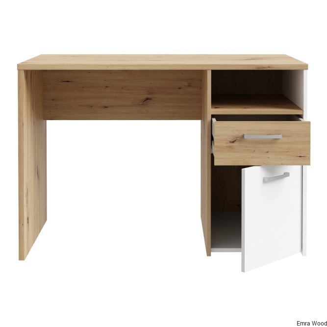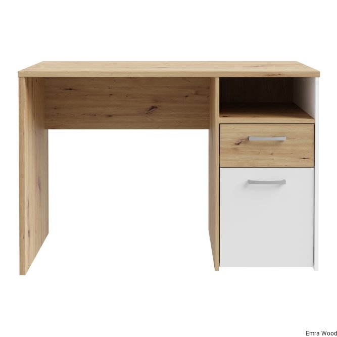 Biurko CULGOA dopełni aranżację domowego biurka lub kąciku do pracy w sypialni lub salonie. Wyposażone w szufladę i szafkę, tworzy miejsce nie tylko do pracy czy nauki, ale też do przechowywania. Na przestronnym blacie nie zabraknie miejsca na laptop, notatnik, słuchawki i lampkę. Ponadczasowy dekor Dąb Artisan ułatwi zestawienie biurka CULGOA z innymi meblami, dostępnymi w ofercie FORTE.