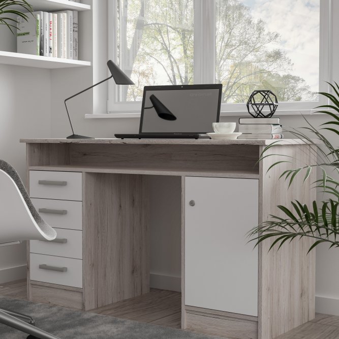 Funkcjonalność i delikatna kompozycja kolorystyczna umożliwią zastosowanie biurka zarówno w pokoju młodzieżowym, jak i w domowym biurze. Po obu stronach mebla znajduje się mnóstwo miejsca do przechowywania - cztery praktyczne szuflady oraz zamykana na klucz szafka.
