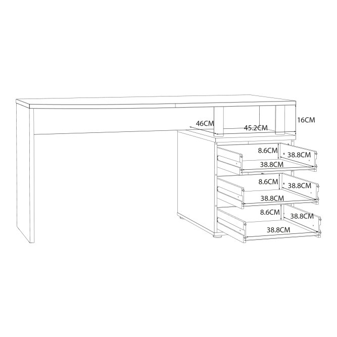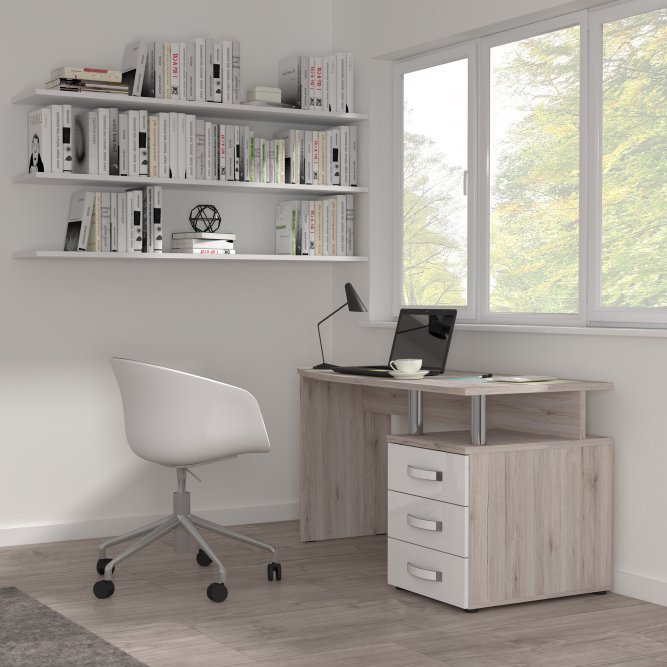 Praktyczne, a do tego modnie i zawsze elegancko prezentujące się biurko, które służy funkcjonalną formą i pięknie prezentuje się w nowoczesnych wnętrzach. Ten mebel zapewni Ci komfort podczas pracy lub nauki, usprawni ją, a także – dzięki swój modnej i pełen świeżości prezencji – znacznie ją umili. Świetnie sprawdzi się w gabinecie, pokoju nastolatka, a nawet w biurze.