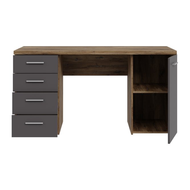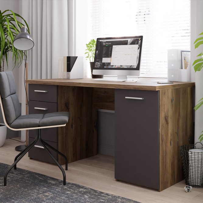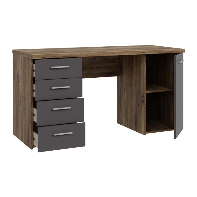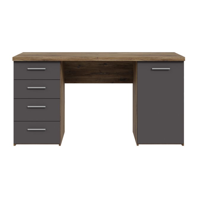 | Biurko z kolekcji NET106 to idealny wybór, jeżeli chcesz umeblować dowolne pomieszczenie. Wyposażone w wygodny blat, tworzy miejsce do pracy i nauki. 4 pojemne i podręczne szuflady oraz półka ukryta za frontem umożliwiają przechowywanie najważniejszych rzeczy w pobliżu miejsca pracy. Biurko w dekorze łączącym Dąb Flagstaff i szarym polecane jest zwłaszcza do pomieszczeń, w których dominuje styl modern loft. |