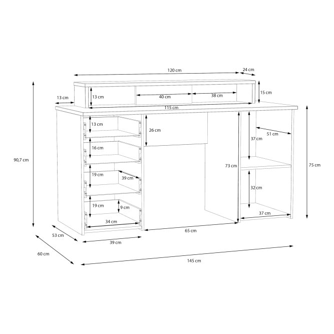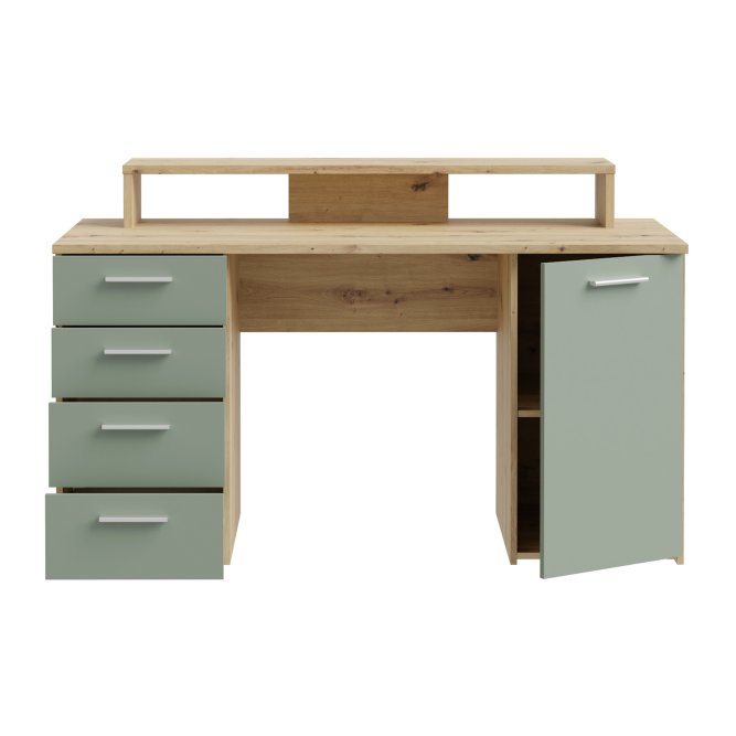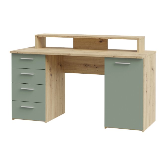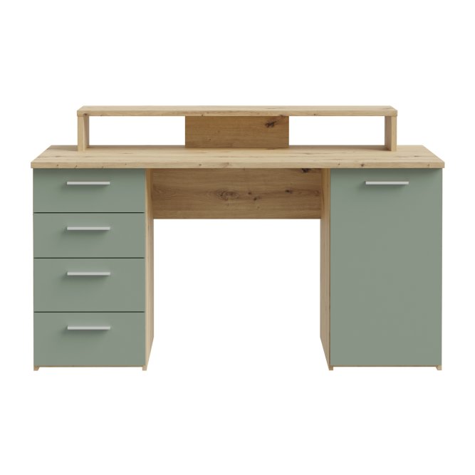 Biurko z kolekcji NET106 to idealny wybór, jeżeli chcesz umeblować pokój młodzieżowy lub domowe biuro. Blat o szerokości 145 cm, tworzy miejsce do pracy i nauki. 4 szuflady i szafka umożliwiają przechowywanie najważniejszych rzeczy w pobliżu miejsca pracy lub nauki. Natomiast specjalna nadstawka na monitor pozwoli Ci dostosować wysokość ekranu, co przełoży się na lepszą postawę ciała i większy komfort podczas pracy.