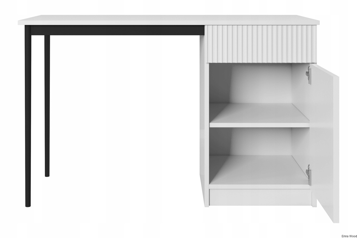 Wyjątkowe połączenie białego matowego korpusu z czarnymi metalowymi nogami sprawia, że ten mebel wyróżnia się na tle innych. Biała matowa powierzchnia dodaje mu elegancji, a jednocześnie jest łatwa do utrzymania w czystości.