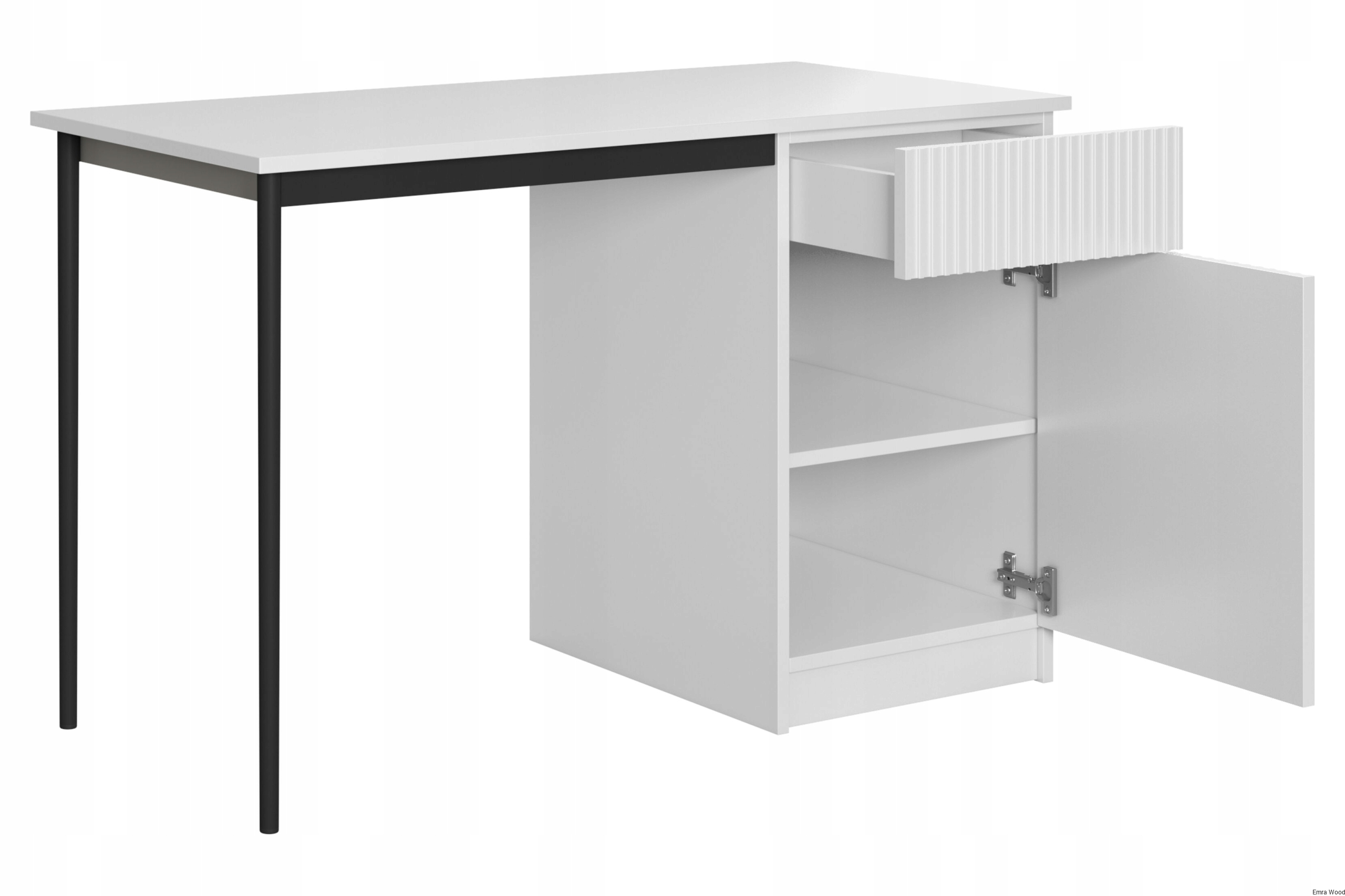 Czy poszukujesz biurka, które będzie nie tylko funkcjonalne, ale również stylowe i eleganckie? Biurko Nicole z szufladą 120 cm - biały mat / czarne nóżki, to wszystko spełnia.