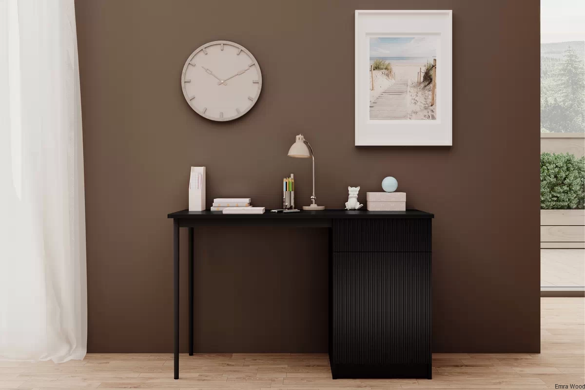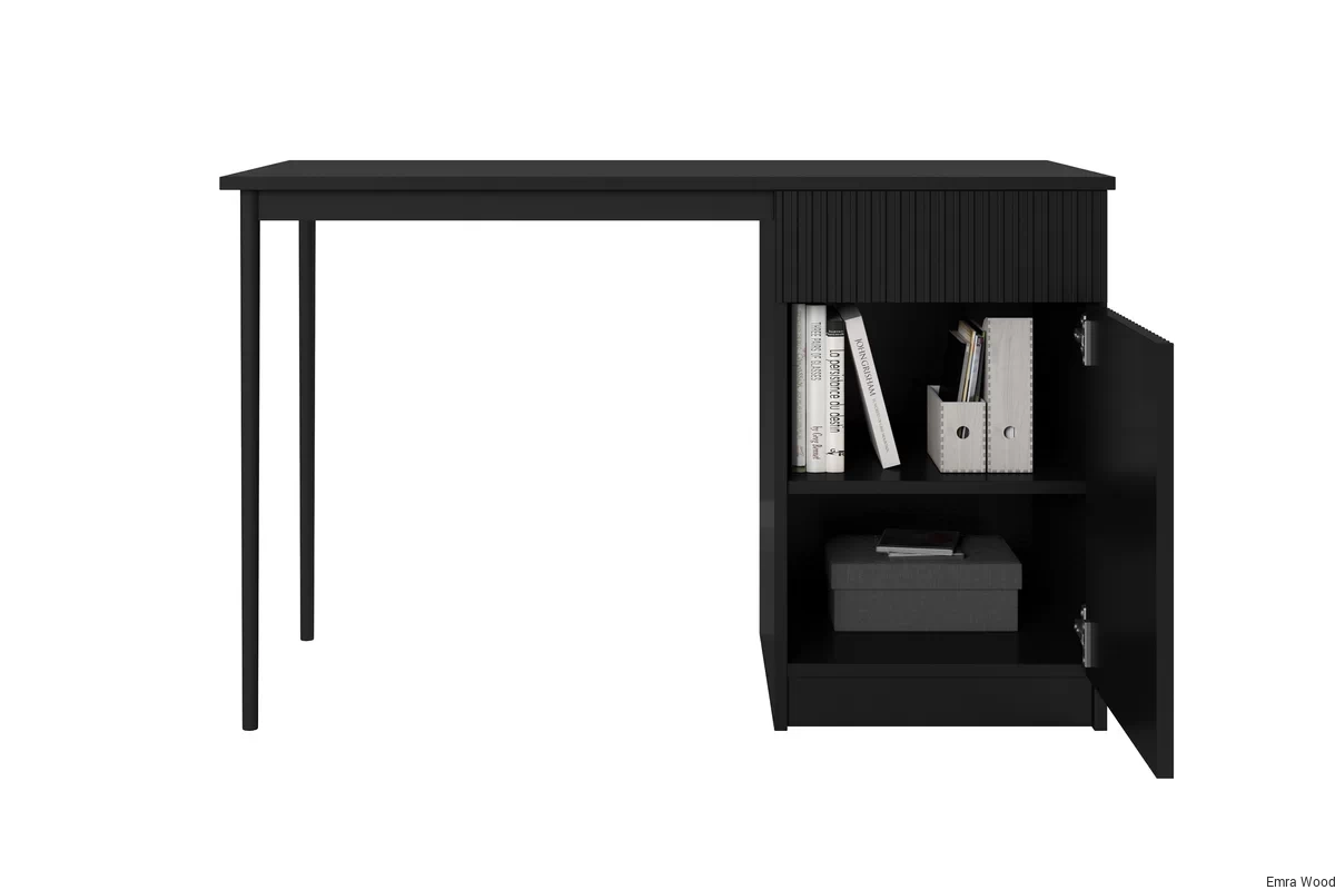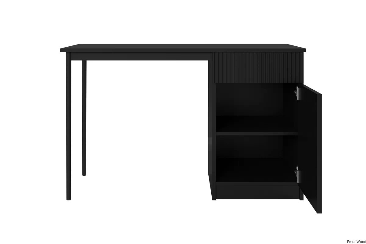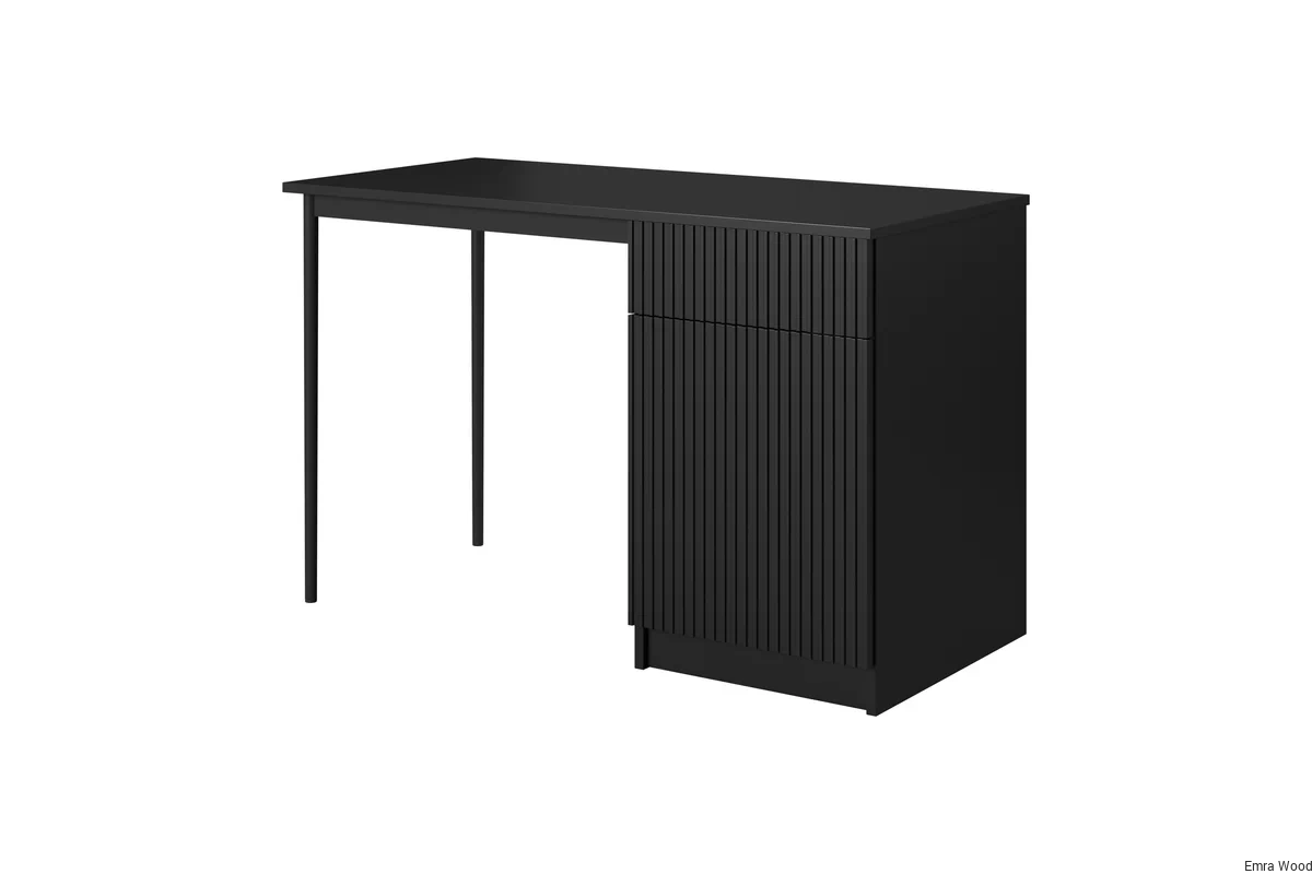 Czy szukasz biurka, które będzie nie tylko praktyczne, ale też stylowe i eleganckie? Biurko Nicole z szufladą 120 cm - czarny mat / czarne nóżki to wszystko spełnia.
