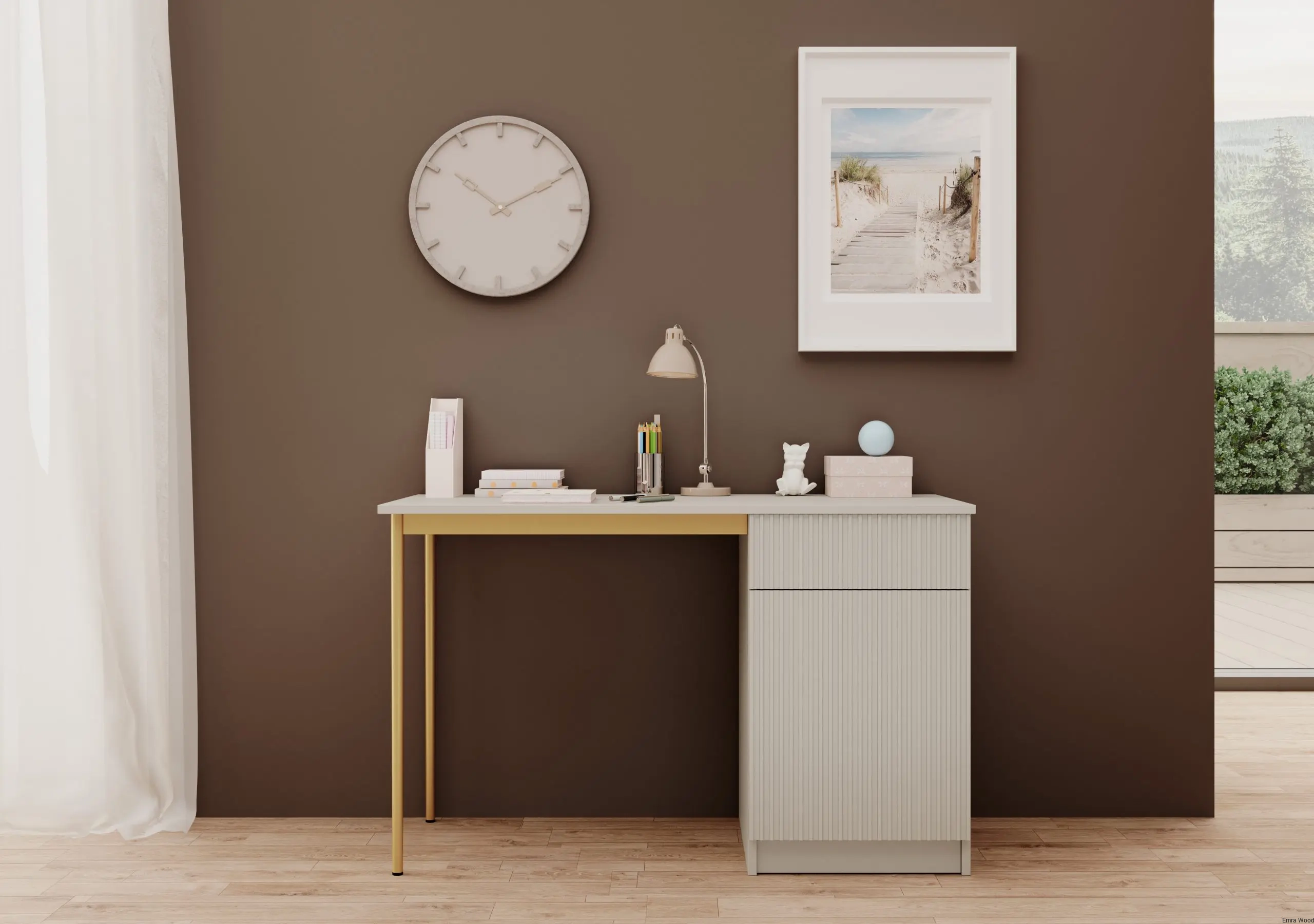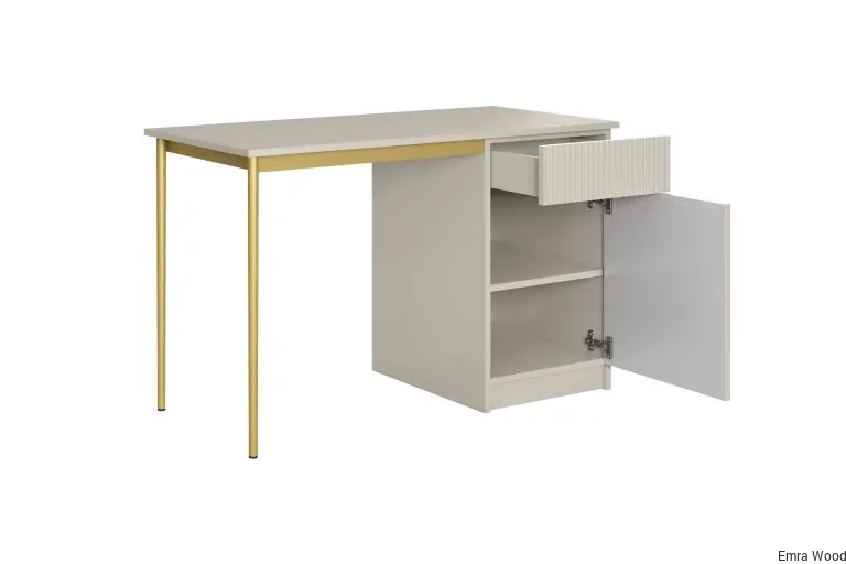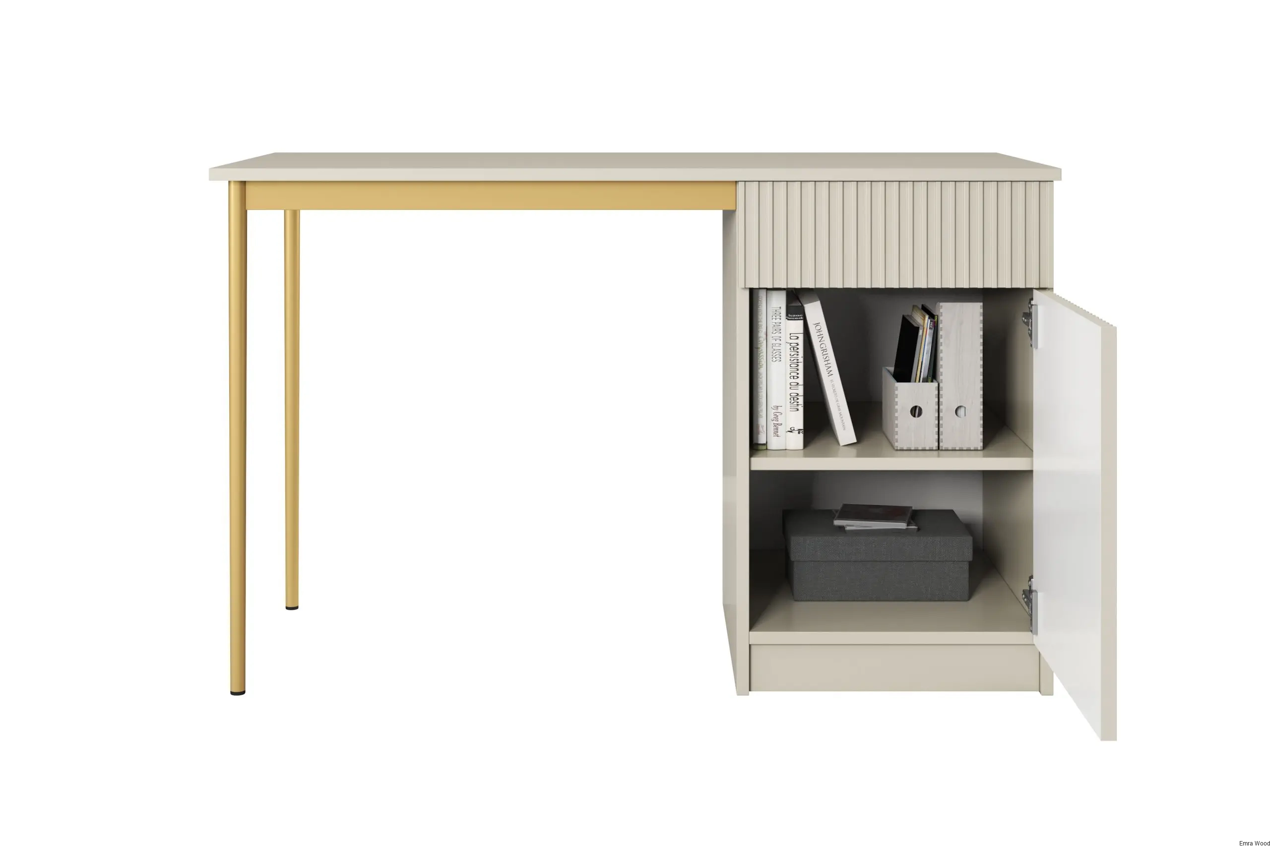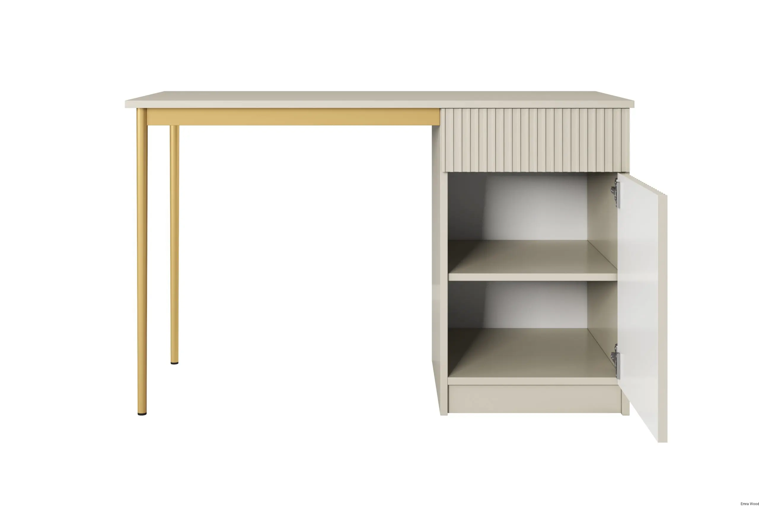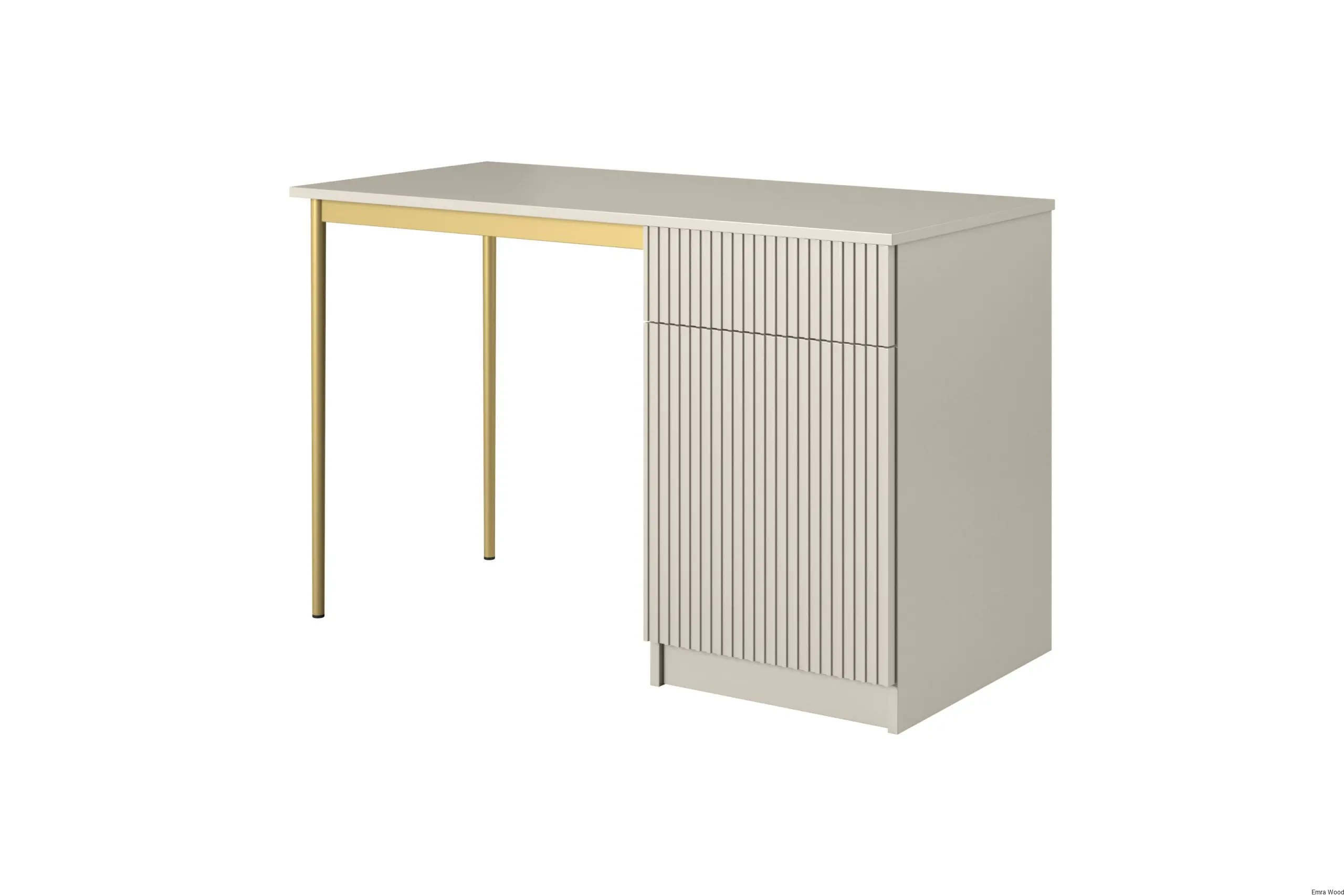 Czy szukasz funkcjonalnego biurka, które będzie nie tylko praktyczne, ale również eleganckie i stylowe? Biurko Nicole z szufladą 120 cm - kaszmir / złote nóżki to produkt idealny dla Ciebie!