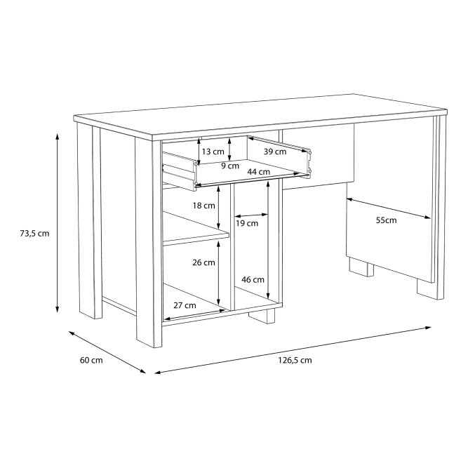 Stylizowane biurko z tej kolekcji ułatwi zaprojektowanie odważnego i unikatowego wnętrza ale również pomoże stworzyć miejsce idealne do zorganizowanej pracy. Wewnątrz biurka znajdziemy szufladę i półkę z przegródkami. Powierzchnia biurka jest wytrzymała i łatwa do czyszczenia.