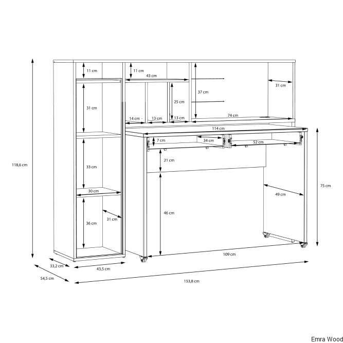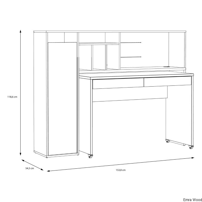 | Funkcjonalne biurko o wymiarach: szerokość 153,8 cm x wysokość 118,6 cm x głębokość 54,5 cm |