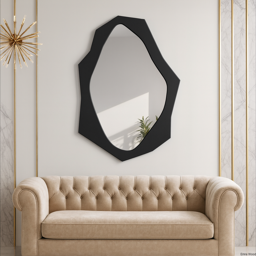 Strona główna » Lustra » Dekoracyjne lustro o ostrym organicznym kształcie w ramie mdf - MINORE
