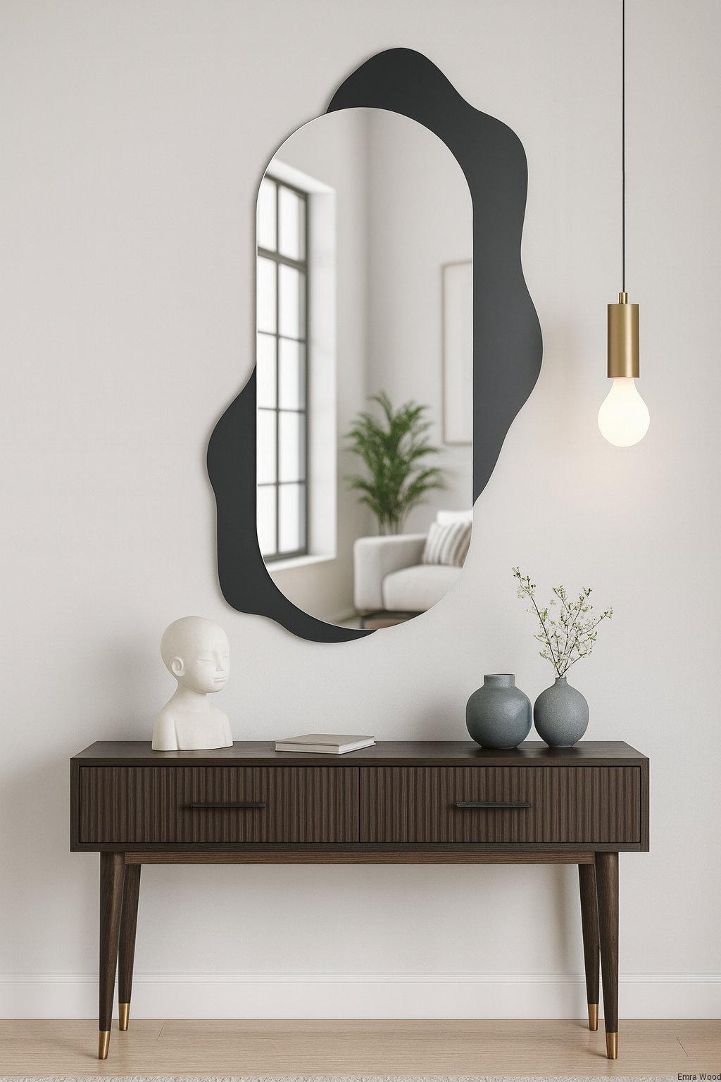 Rodzaj lustra: lustro wielopłaszczyznowe – lustro, które składa się z kilku tafli połączonych ze sobą wedle projektu. Elementy nie są zlicowane w jedną powierzchnię