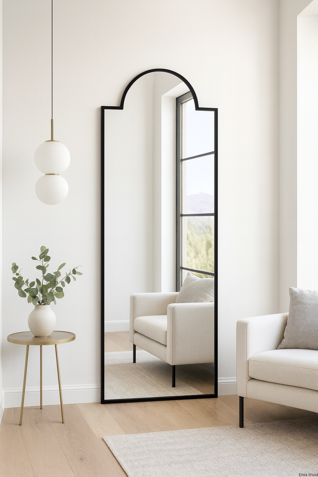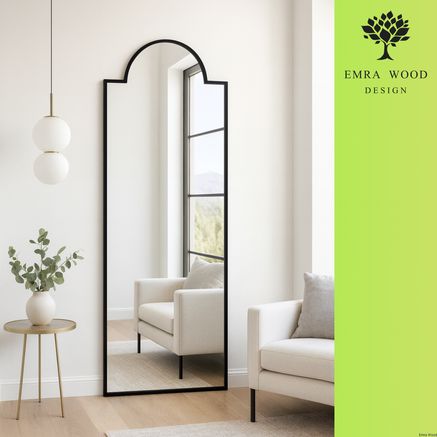 Lustro PENELOPE – półokrągłe lustro dekoracyjne w stylu minimalistycznym do przedpokoju, salonu i łazienki