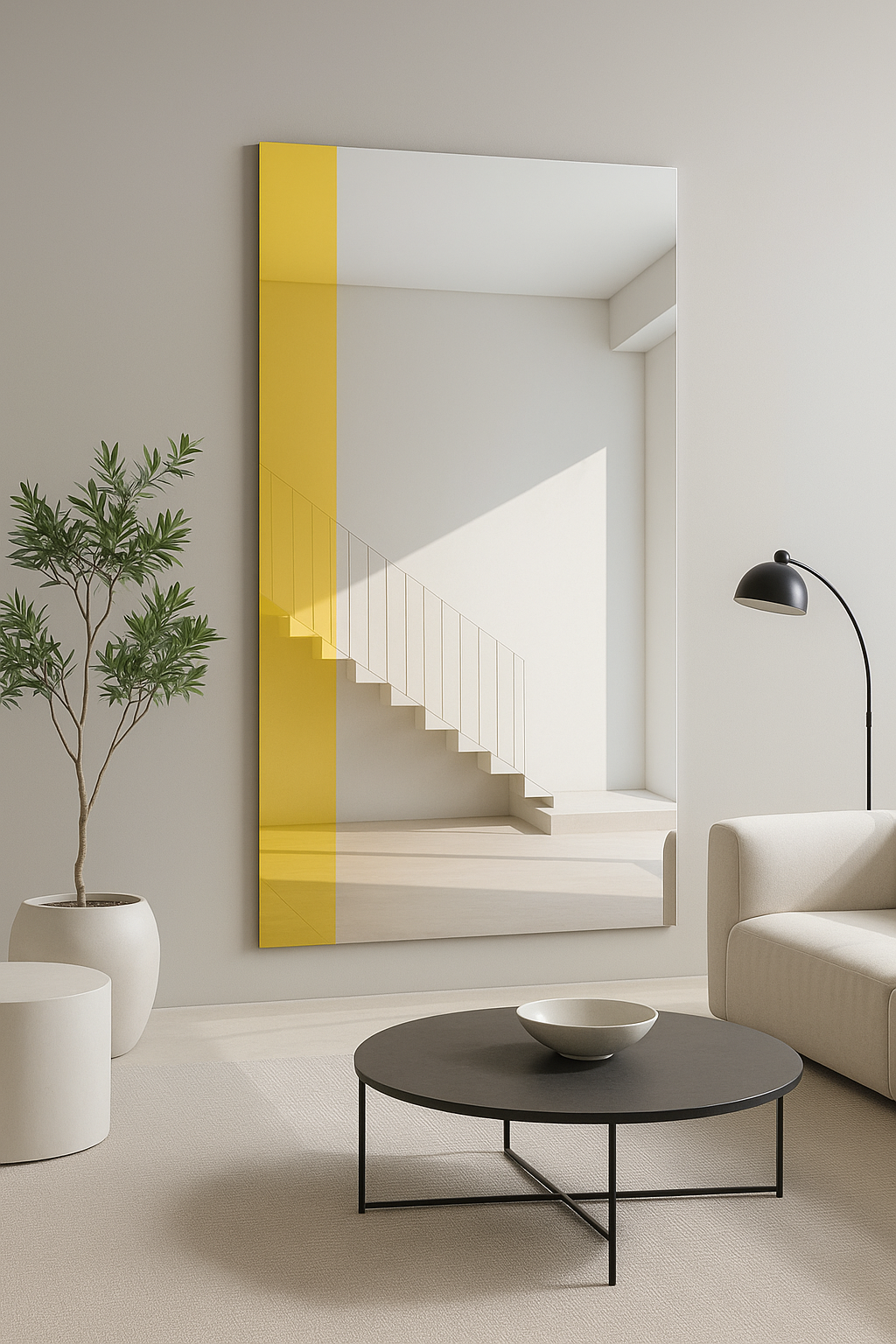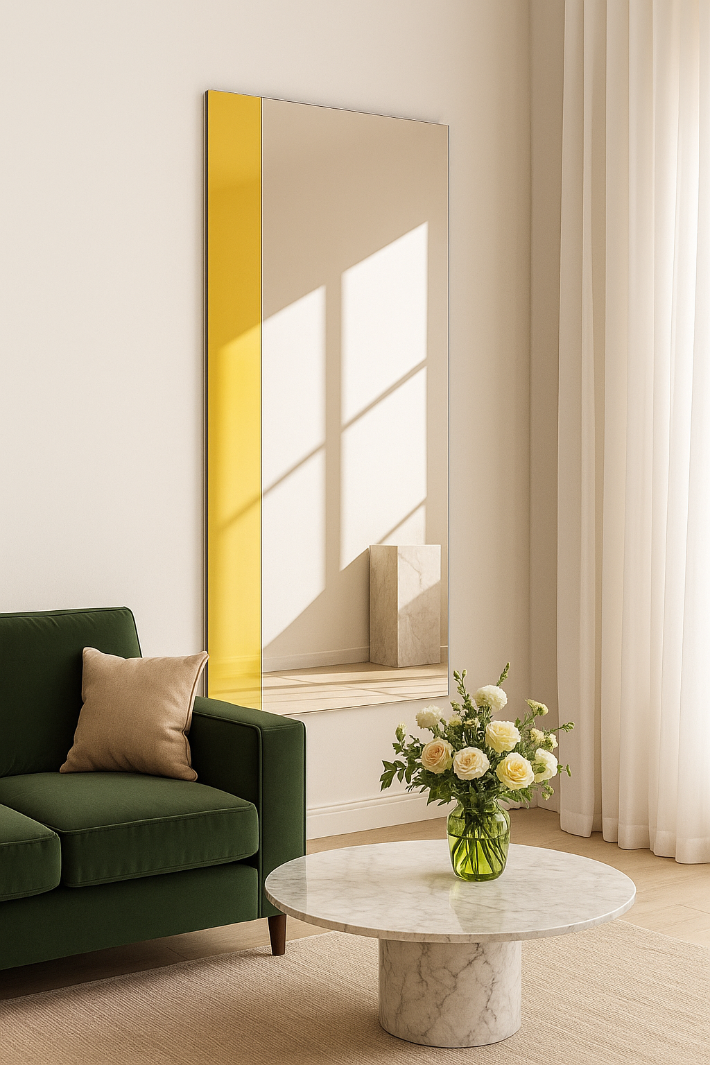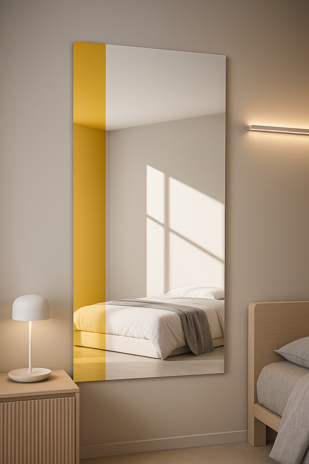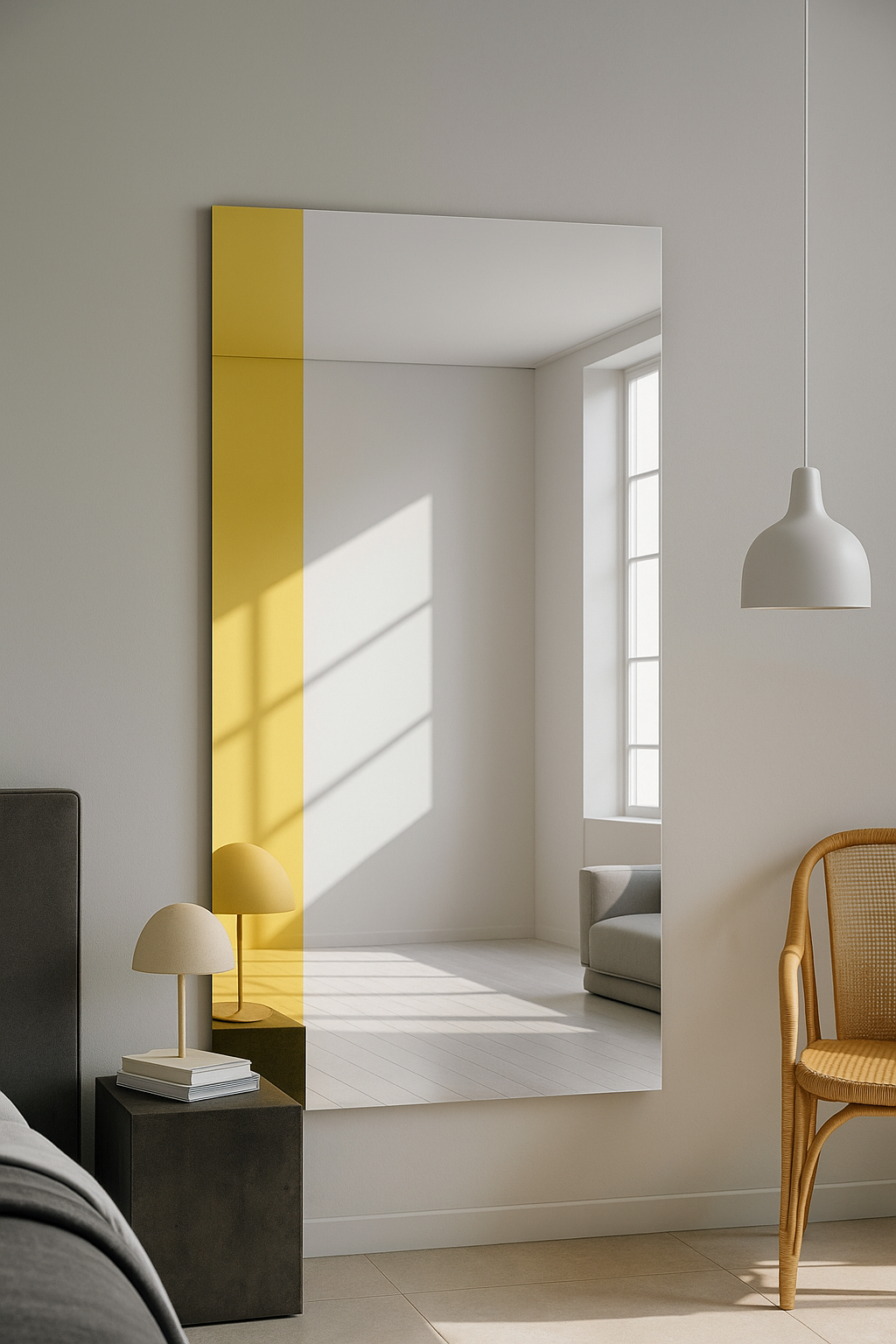 Rodzaj lustra: lustro wielopłaszczyznowe – lustro, które składa się z kilku tafli połączonych ze sobą wedle projektu. Elementy nie są zlicowane w jedną powierzchnię