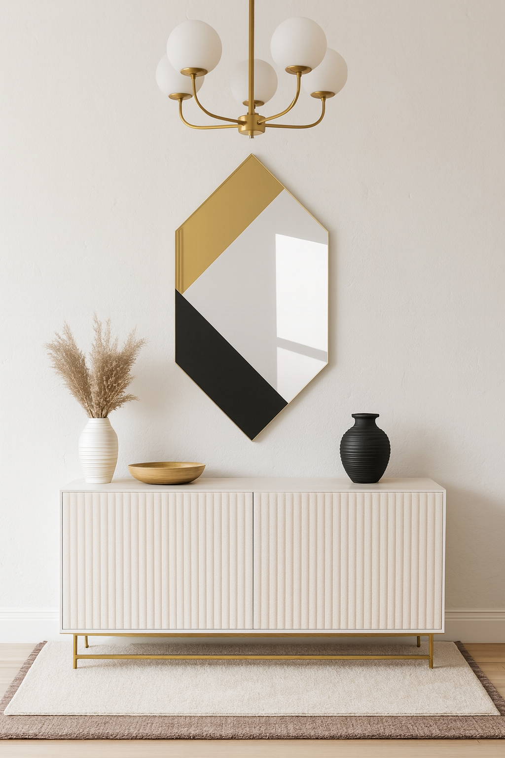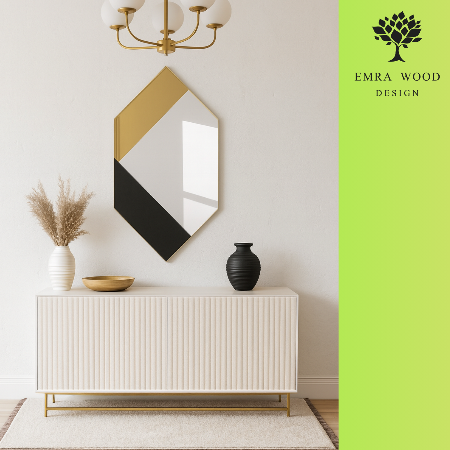 Rodzaj lustra: lustro wielopłaszczyznowe – lustro, które składa się z kilku tafli połączonych ze sobą wedle projektu. Elementy nie są zlicowane w jedną powierzchnię