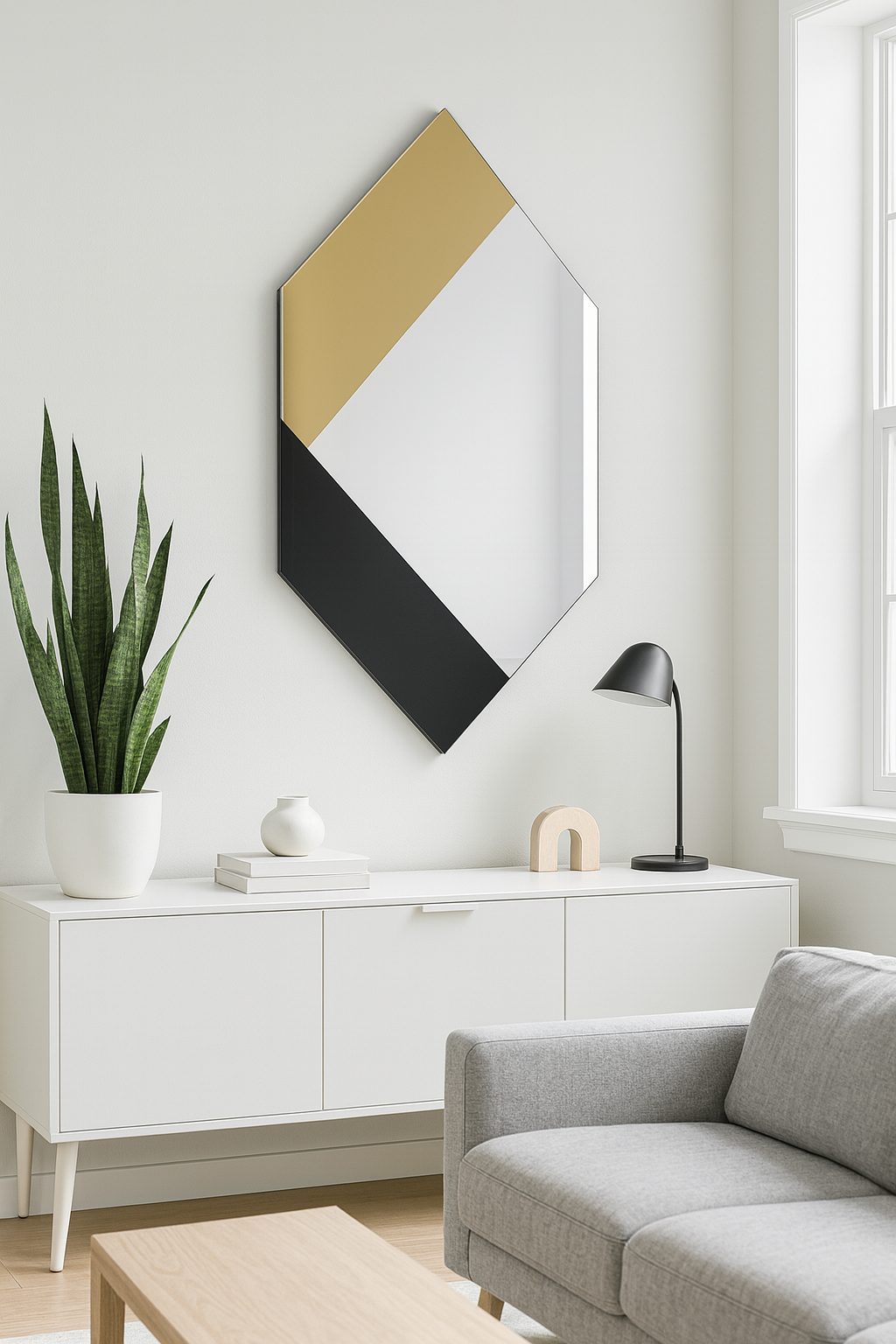 Lustro PRISMÉ – eleganckie lustro o ostrym, organicznym kształcie w pryzmatycznej formie i szlachetnej linii