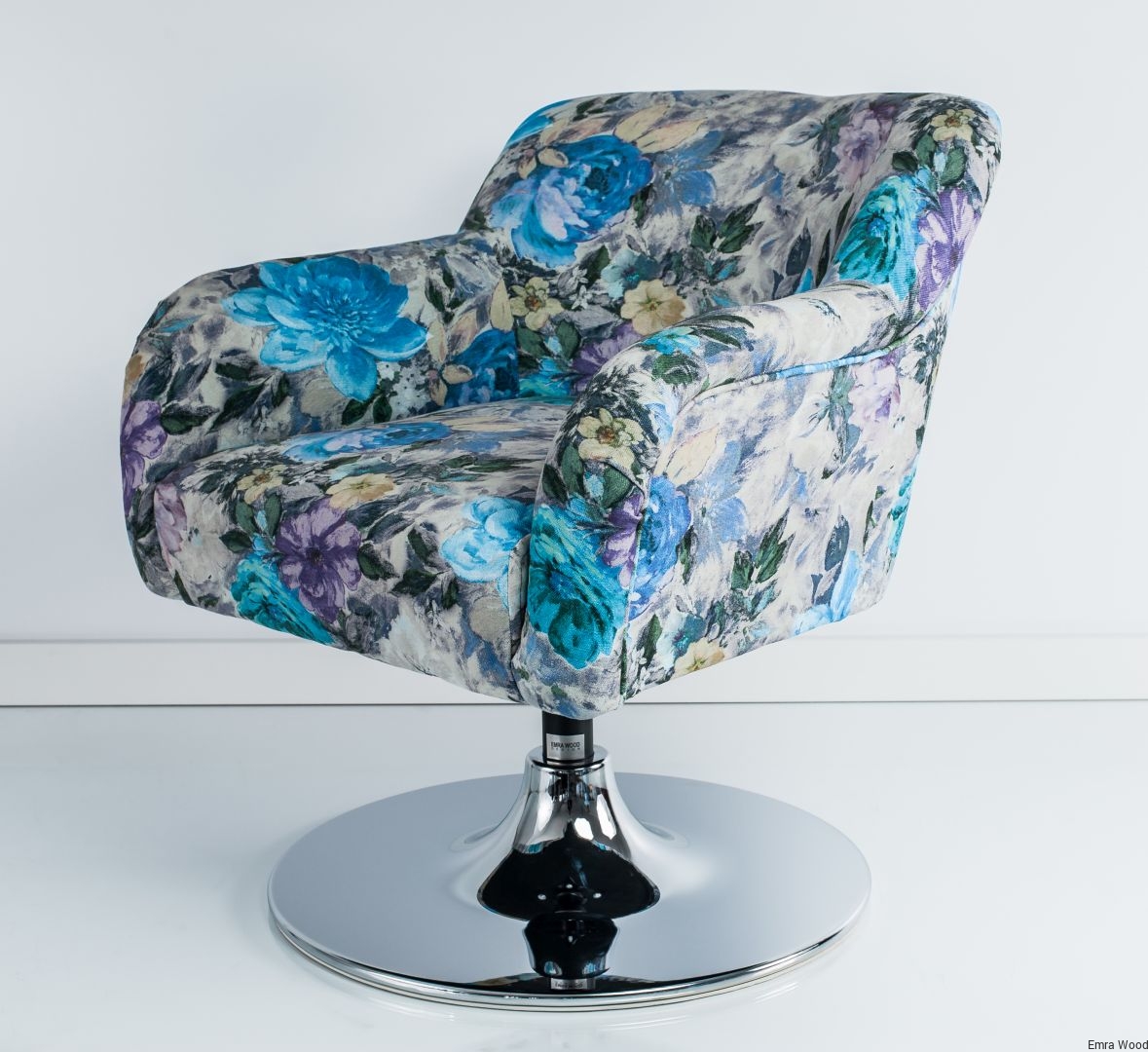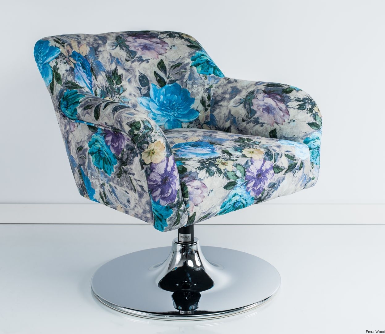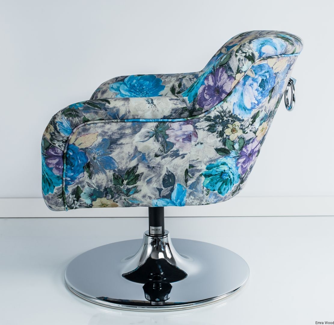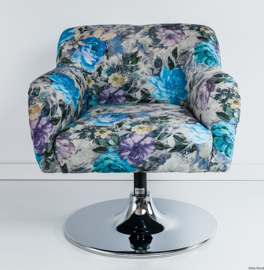 Fotel Obrotowy / Tkanina Kwiaty / Podstawa Chromowa