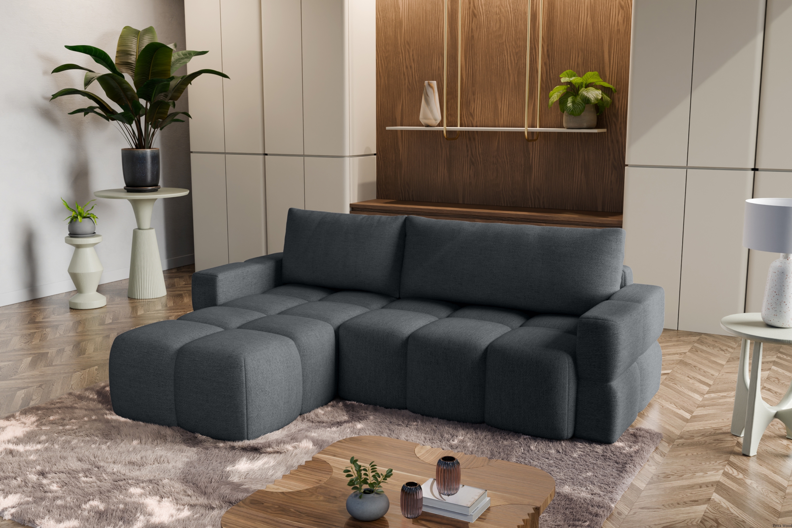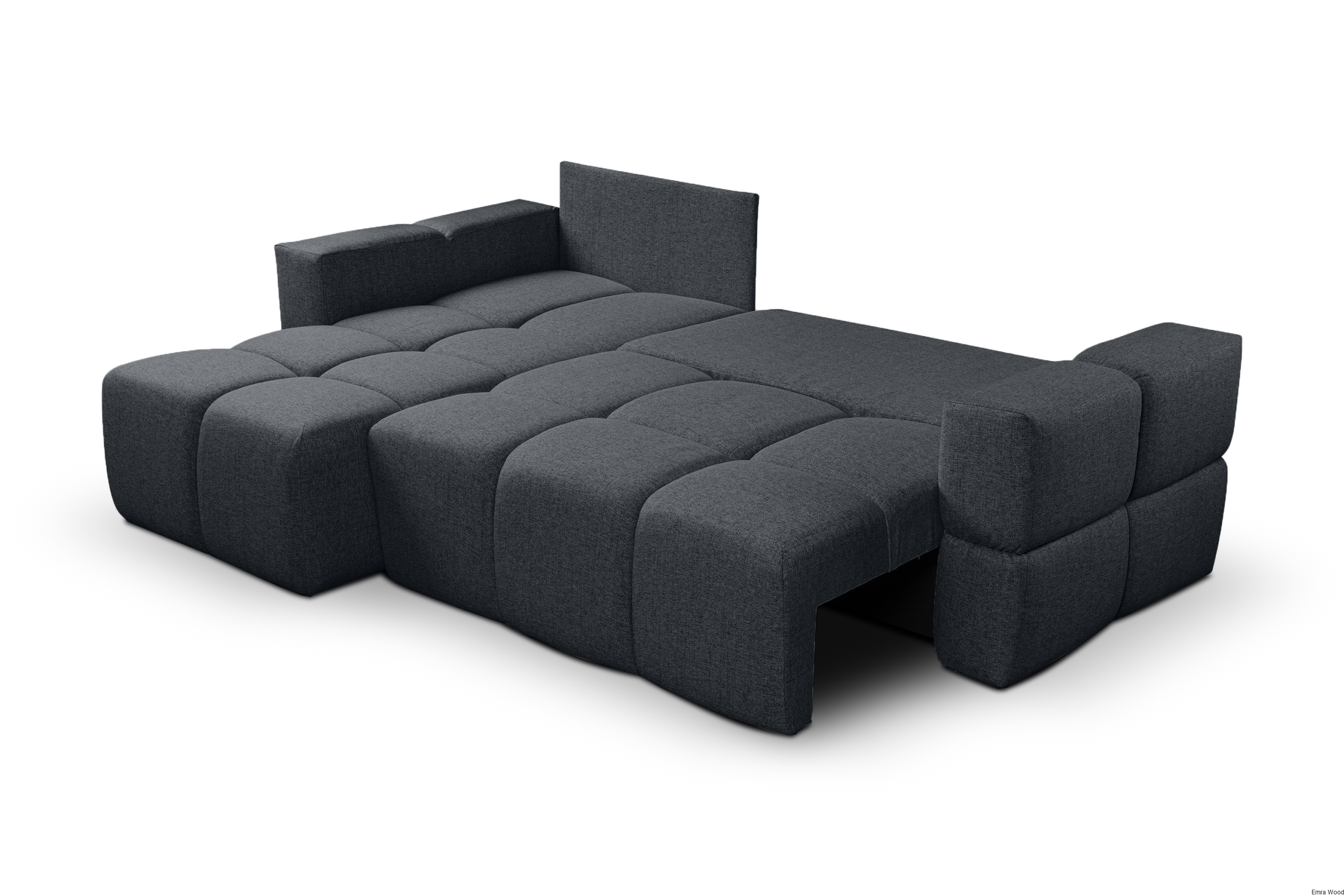 Jednym z najważniejszych atutów narożnika Fumo jest funkcja rozkładania, która w kilka chwil zamienia narożnik w wygodne łóżko. Mechanizm działa płynnie i intuicyjnie, pozwalając przygotować dodatkowe miejsce do spania dla gości lub domowników bez zbędnego wysiłku. To praktyczne rozwiązanie sprawia, że Fumo  jest nie tylko eleganckim meblem, ale również funkcjonalnym elementem wyposażenia salonu.