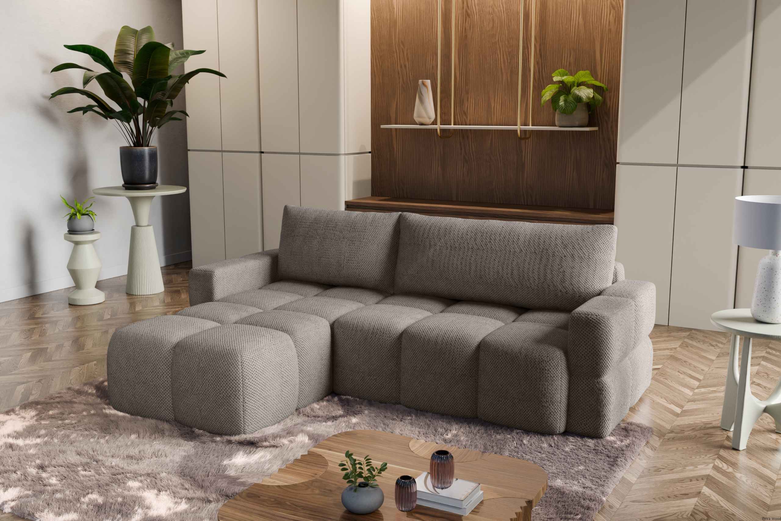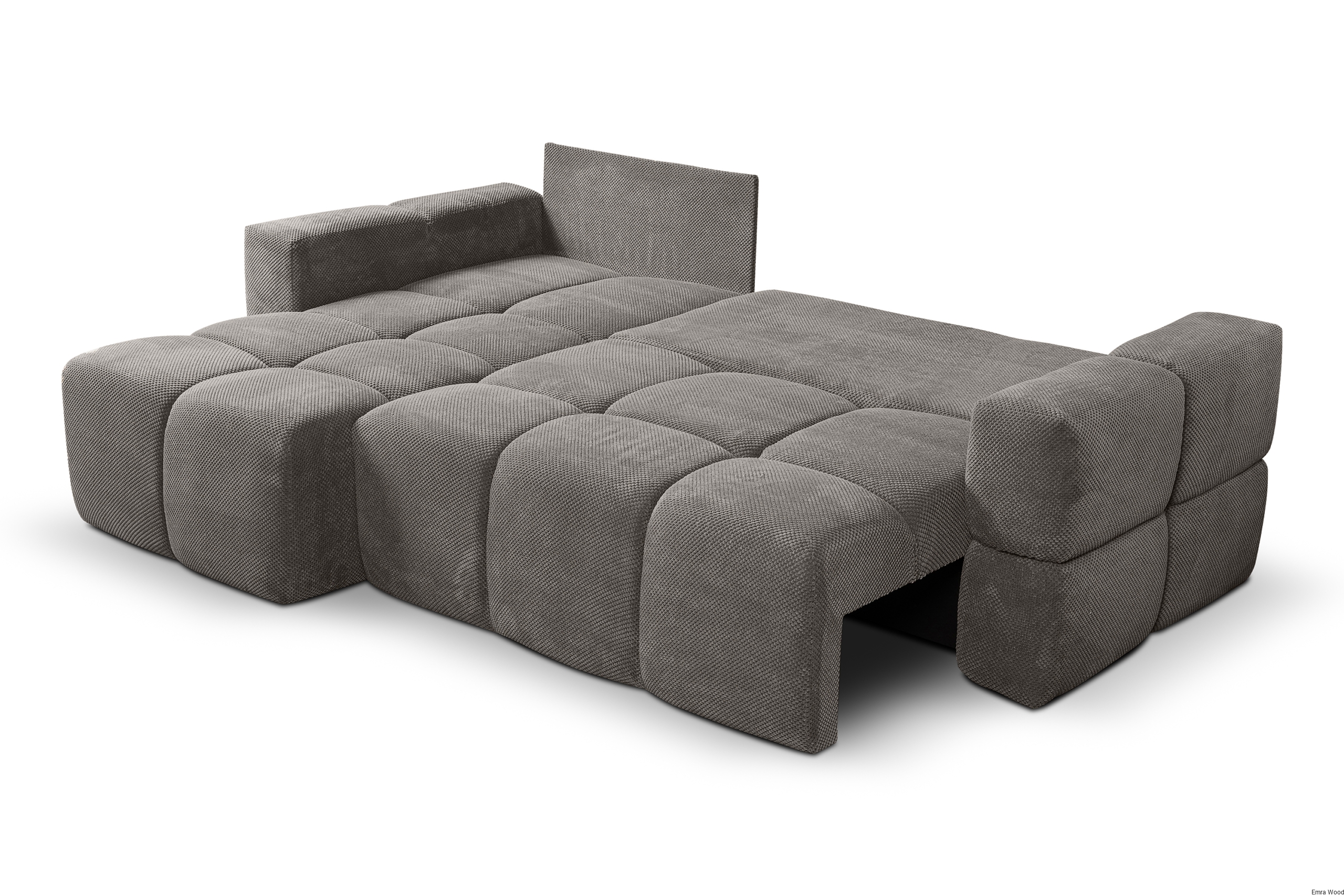 Jednym z najważniejszych atutów narożnika Fumo jest funkcja rozkładania, która w kilka chwil zamienia narożnik w wygodne łóżko. Mechanizm działa płynnie i intuicyjnie, pozwalając przygotować dodatkowe miejsce do spania dla gości lub domowników bez zbędnego wysiłku. To praktyczne rozwiązanie sprawia, że Fumo  jest nie tylko eleganckim meblem, ale również funkcjonalnym elementem wyposażenia salonu.