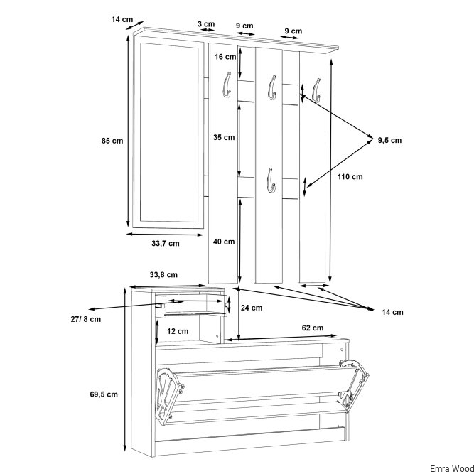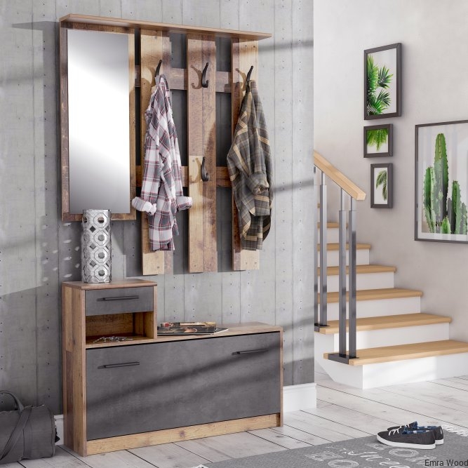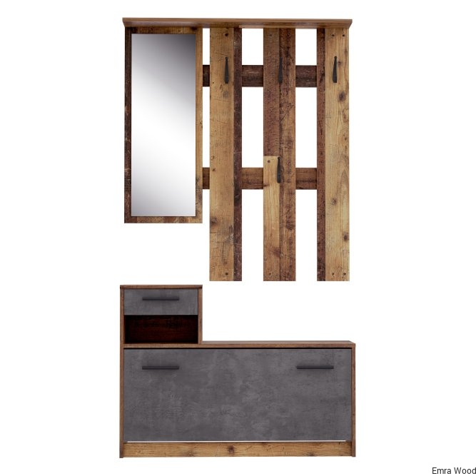 Kompleksowy zestaw funkcjonalnych, eleganckich mebli do przedpokoju w industrialnym stylu to doskonała propozycja do nowoczesnego wnętrza. Wykonany w dekorze Old- Wood Vintage i Beton Ciemnoszary, dzięki czemu można go dowolnie komponować z innymi meblami z tej samej kolekcji.