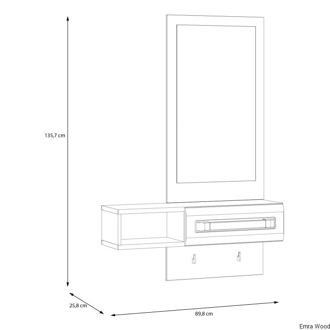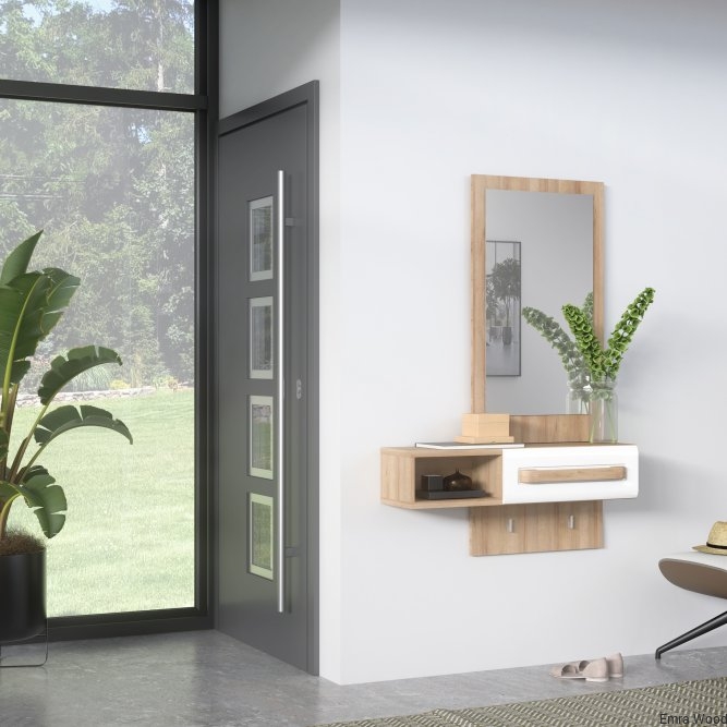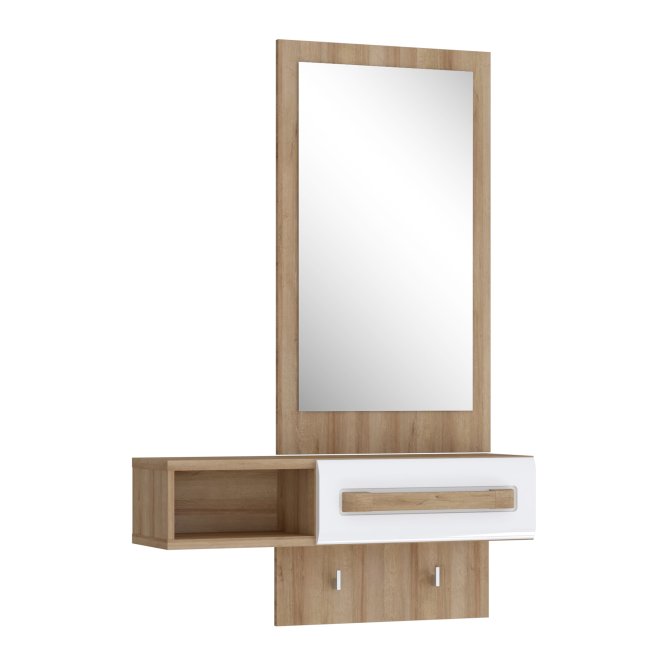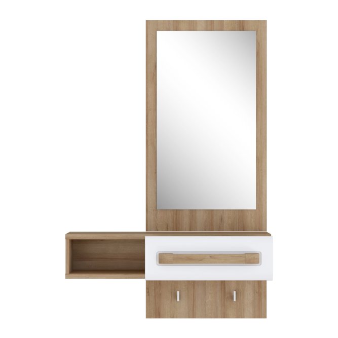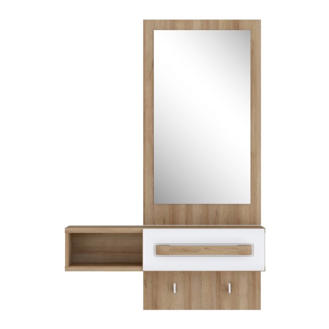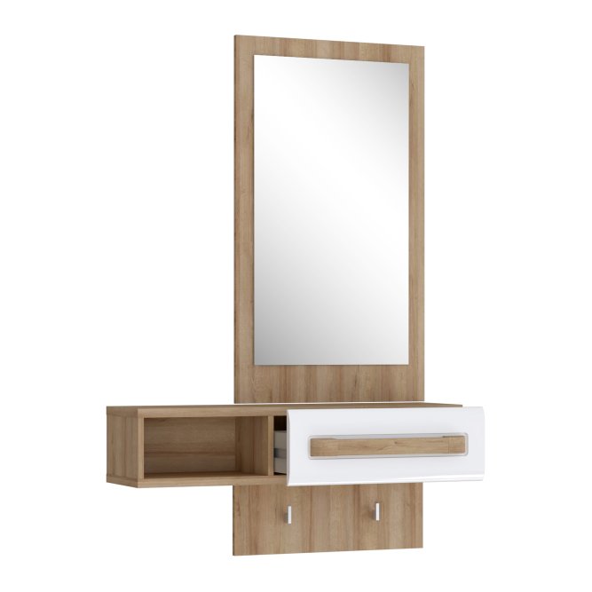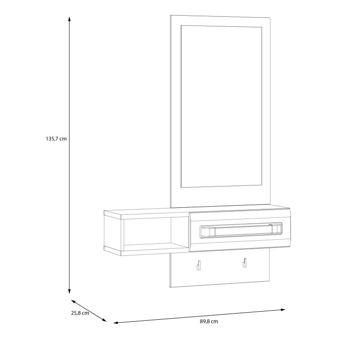 Przedpokój z kolekcji ATTENTION to propozycja dla fanów minimalizmu oraz funkcjonalności. Kompaktowy mebel zapewni oszczędność miejsca oraz wygodne przechowywanie wszystkich niezbędnych rzeczy. Przedpokój ATTENTION wyposażony jest w lustro, praktyczną wnękę i szufladę do schowania drobiazgów, dzięki czemu może posłużyć również jako toaletka.