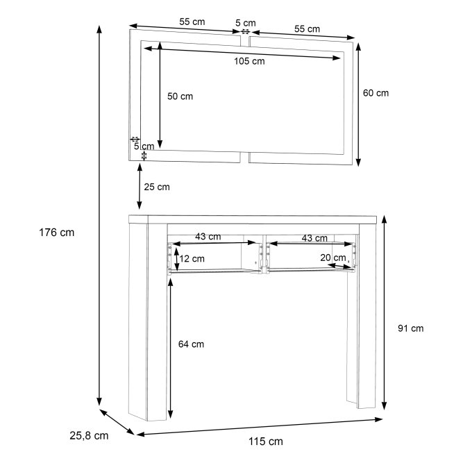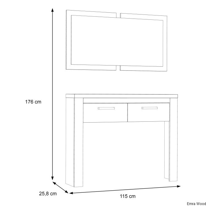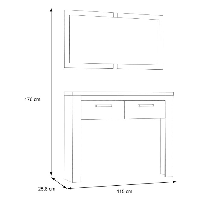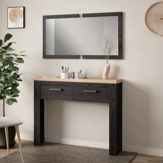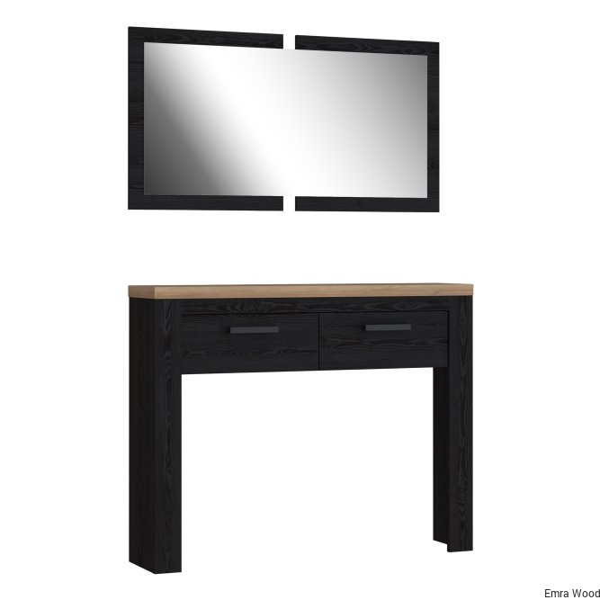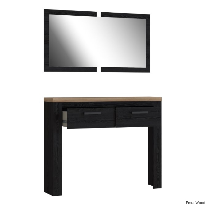 Funkcjonalne meble w przedpokoju są niezwykle ważne. Świetną propozycją jest konsola na którą odłożymy klucze, a inne drobiazgi z łatwością przechowamy w dwóch praktycznych szufladach. Idealnym dopełnieniem będzie lustro z tej samej kolekcji.
