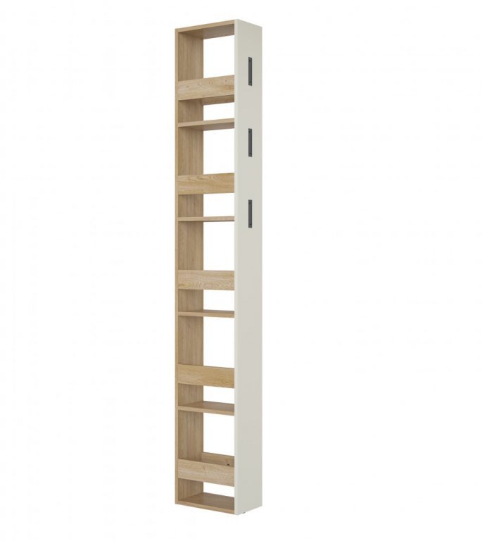 Uniwersalna konstrukcja sprawia, że panel zamontujesz po lewej lub prawej stronie garderoby, dopasowując układ do układu ścian czy drzwi wejściowych. Dzięki temu łatwo stworzysz jednolitą, modulowaną zabudowę, która wykorzysta każdy centymetr pionowej przestrzeni, nie powiększając optycznie mebla w głąb pomieszczenia. To świetne rozwiązanie zwłaszcza w wąskich korytarzach, gdzie liczy się każdy oddech przestrzeni, a jednocześnie potrzebujesz miejsca na drobiazgi, po które sięgasz codziennie.