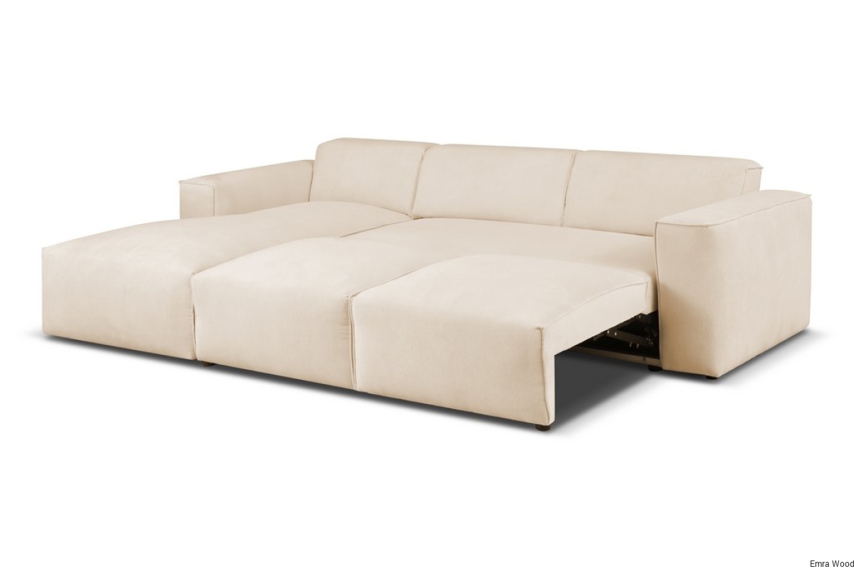 Jednym z największych atutów Hudson jest funkcja rozkładania, która umożliwia szybkie przekształcenie narożnika w komfortowe łóżko. Mechanizm jest prosty w obsłudze i pozwala przygotować dodatkowe miejsce do spania w kilka chwil. To rozwiązanie doskonale sprawdzi się dla osób, które często goszczą przyjaciół lub potrzebują dodatkowego miejsca noclegowego w swoim salonie.