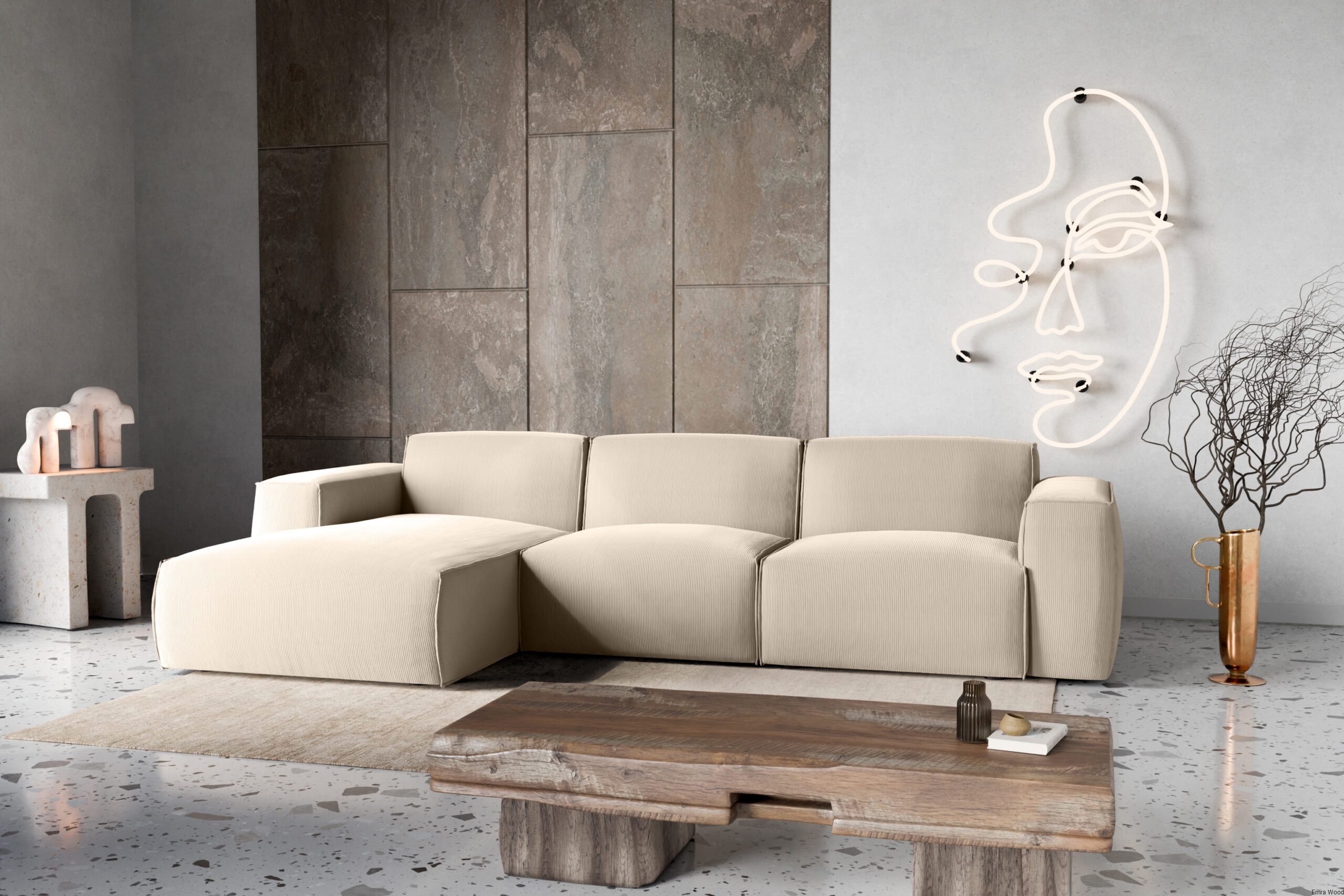 Narożnik Hudson najlepiej prezentuje się w przestronnych salonach, gdzie może stać się centralnym punktem wypoczynkowym. Doskonale komponuje się z jasnymi ścianami i drewnianą podłogą, a także z eleganckimi dodatkami, takimi jak miękkie pledy, poduszki dekoracyjne czy minimalistyczne stoliki kawowe. W większych przestrzeniach można go zestawić z dywanem o stonowanej kolorystyce i designerskimi lampami, tworząc luksusową strefę relaksu.