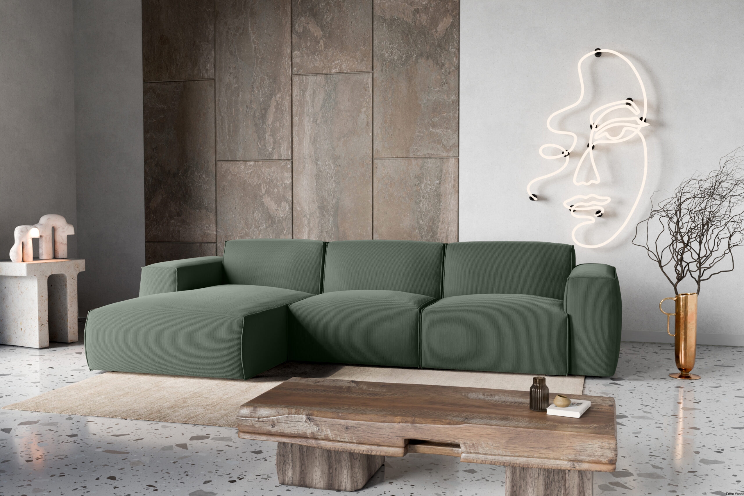 Narożnik Hudson najlepiej prezentuje się w przestronnych salonach, gdzie może stać się centralnym punktem wypoczynkowym. Doskonale komponuje się z jasnymi ścianami i drewnianą podłogą, a także z eleganckimi dodatkami, takimi jak miękkie pledy, poduszki dekoracyjne czy minimalistyczne stoliki kawowe. W większych przestrzeniach można go zestawić z dywanem o stonowanej kolorystyce i designerskimi lampami, tworząc luksusową strefę relaksu.