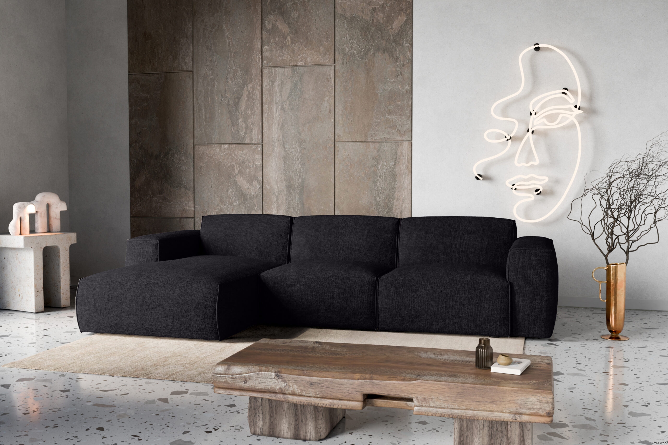 Narożnik Hudson najlepiej prezentuje się w przestronnych salonach, gdzie może stać się centralnym punktem wypoczynkowym. Doskonale komponuje się z jasnymi ścianami i drewnianą podłogą, a także z eleganckimi dodatkami, takimi jak miękkie pledy, poduszki dekoracyjne czy minimalistyczne stoliki kawowe. W większych przestrzeniach można go zestawić z dywanem o stonowanej kolorystyce i designerskimi lampami, tworząc luksusową strefę relaksu.