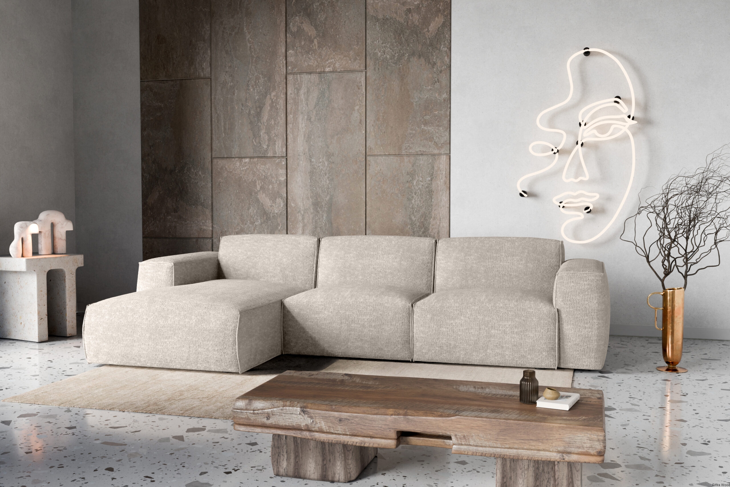 Narożnik Hudson najlepiej prezentuje się w przestronnych salonach, gdzie może stać się centralnym punktem wypoczynkowym. Doskonale komponuje się z jasnymi ścianami i drewnianą podłogą, a także z eleganckimi dodatkami, takimi jak miękkie pledy, poduszki dekoracyjne czy minimalistyczne stoliki kawowe. W większych przestrzeniach można go zestawić z dywanem o stonowanej kolorystyce i designerskimi lampami, tworząc luksusową strefę relaksu.