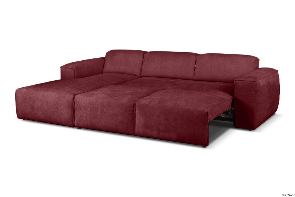 Jednym z największych atutów Hudson jest funkcja rozkładania, która umożliwia szybkie przekształcenie narożnika w komfortowe łóżko. Mechanizm jest prosty w obsłudze i pozwala przygotować dodatkowe miejsce do spania w kilka chwil. To rozwiązanie doskonale sprawdzi się dla osób, które często goszczą przyjaciół lub potrzebują dodatkowego miejsca noclegowego w swoim salonie.