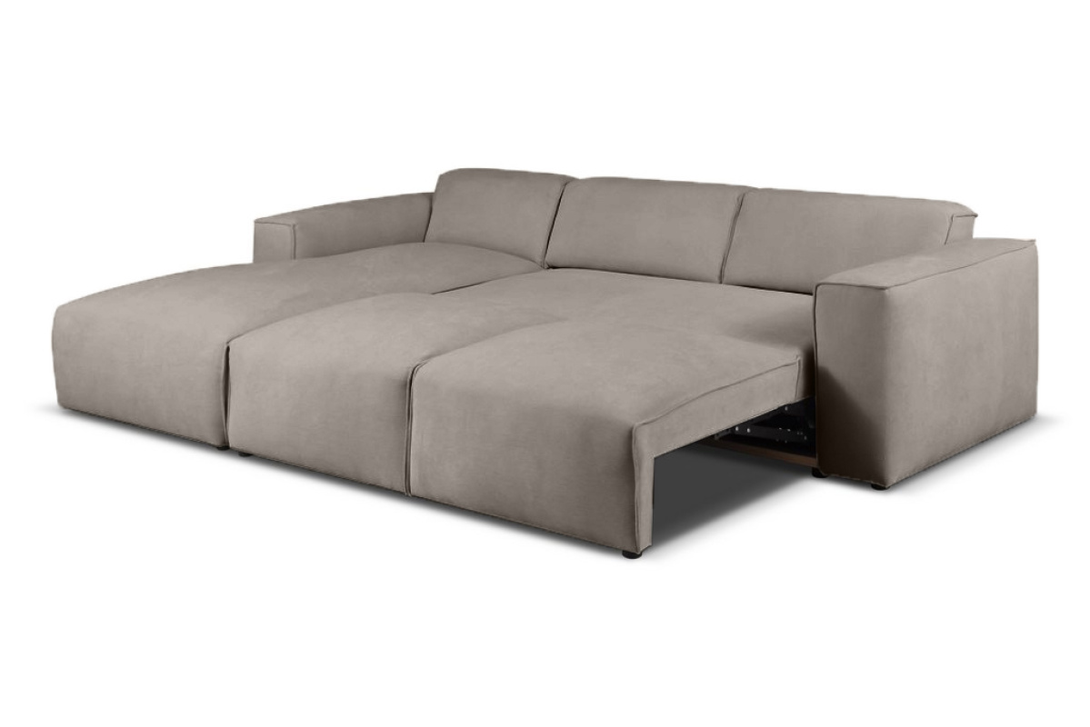 Jednym z największych atutów Hudson jest funkcja rozkładania, która umożliwia szybkie przekształcenie narożnika w komfortowe łóżko. Mechanizm jest prosty w obsłudze i pozwala przygotować dodatkowe miejsce do spania w kilka chwil. To rozwiązanie doskonale sprawdzi się dla osób, które często goszczą przyjaciół lub potrzebują dodatkowego miejsca noclegowego w swoim salonie.