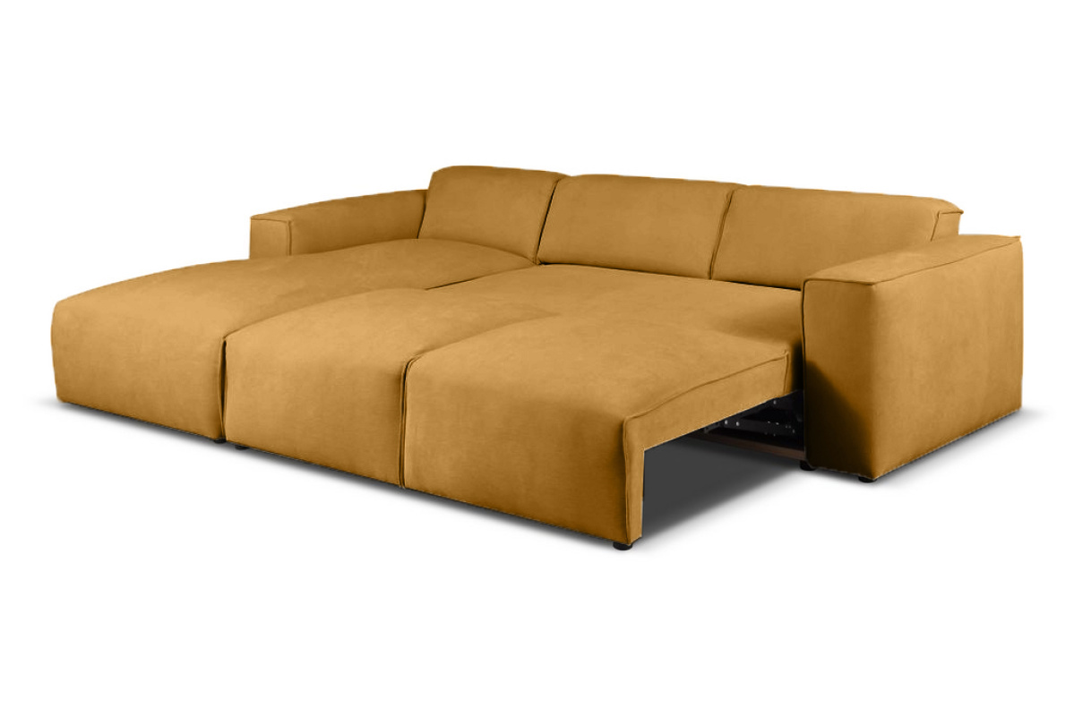 Jednym z największych atutów Hudson jest funkcja rozkładania, która umożliwia szybkie przekształcenie narożnika w komfortowe łóżko. Mechanizm jest prosty w obsłudze i pozwala przygotować dodatkowe miejsce do spania w kilka chwil. To rozwiązanie doskonale sprawdzi się dla osób, które często goszczą przyjaciół lub potrzebują dodatkowego miejsca noclegowego w swoim salonie.