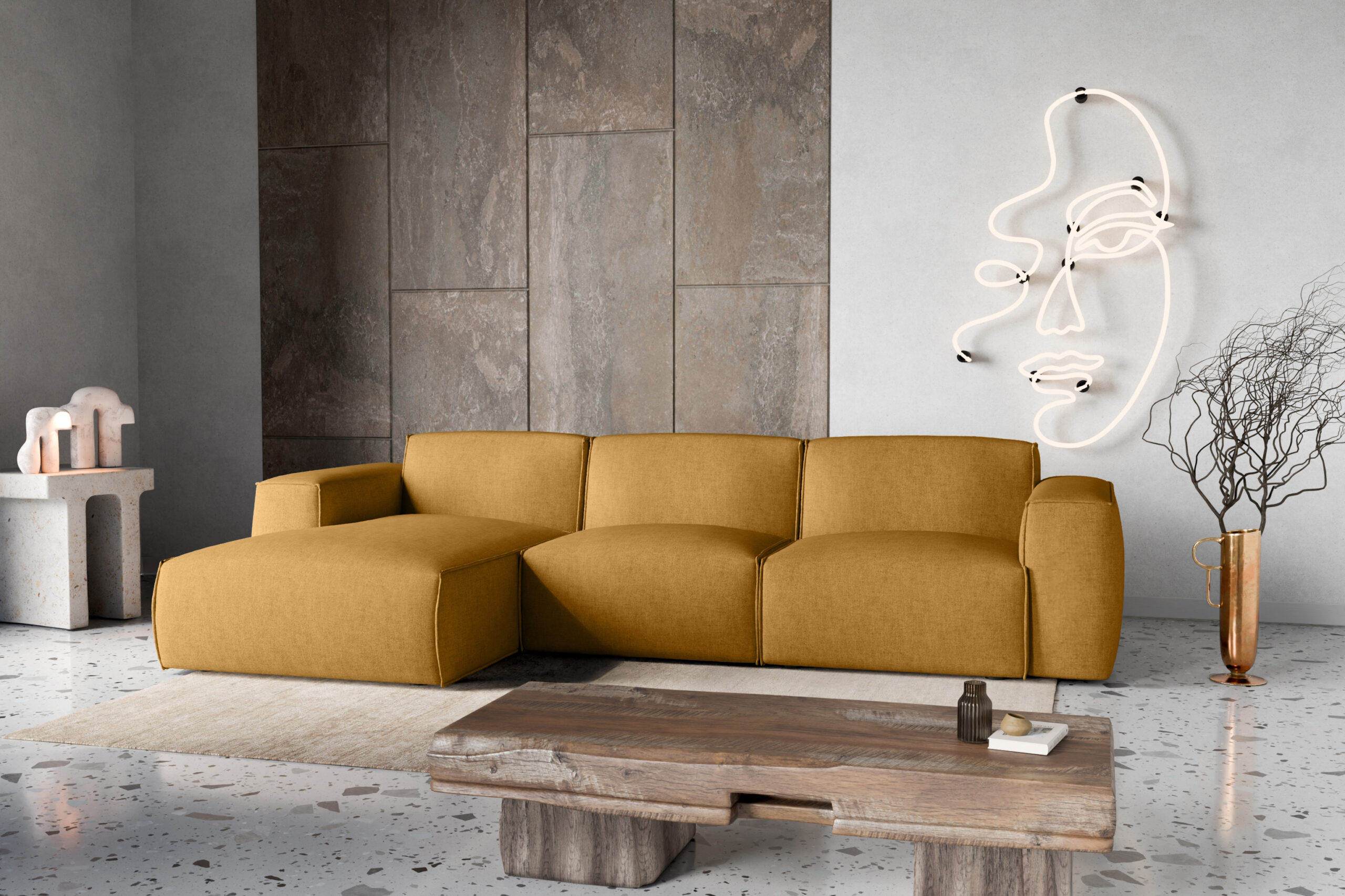 Narożnik Hudson najlepiej prezentuje się w przestronnych salonach, gdzie może stać się centralnym punktem wypoczynkowym. Doskonale komponuje się z jasnymi ścianami i drewnianą podłogą, a także z eleganckimi dodatkami, takimi jak miękkie pledy, poduszki dekoracyjne czy minimalistyczne stoliki kawowe. W większych przestrzeniach można go zestawić z dywanem o stonowanej kolorystyce i designerskimi lampami, tworząc luksusową strefę relaksu.
