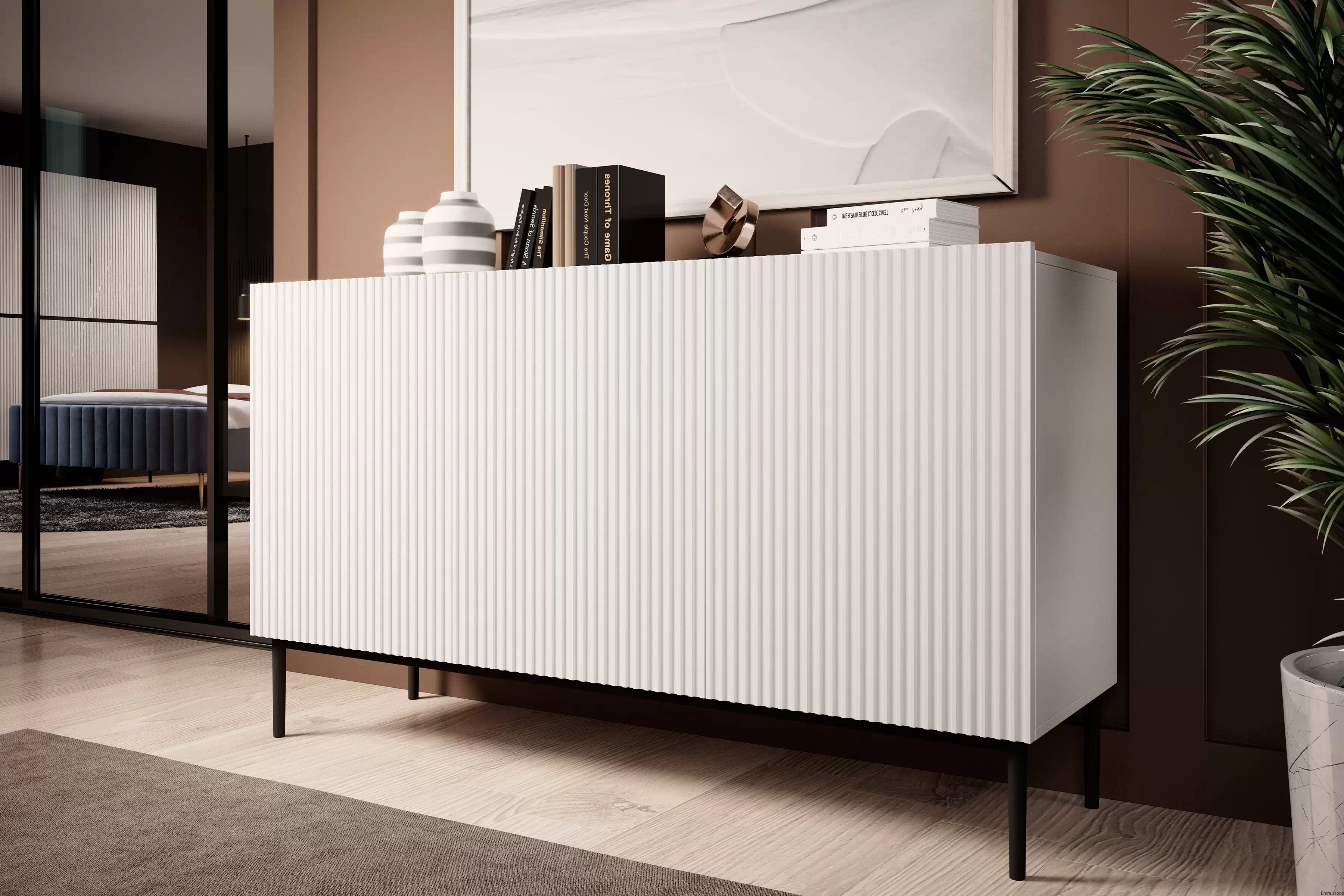 Potrzebujesz praktycznego, a zarazem efektownego miejsca na przechowywanie? Komoda Nicole 150 cm z ryflowanym frontem i metalowymi nogami to spełnienie Twoich marzeń.
