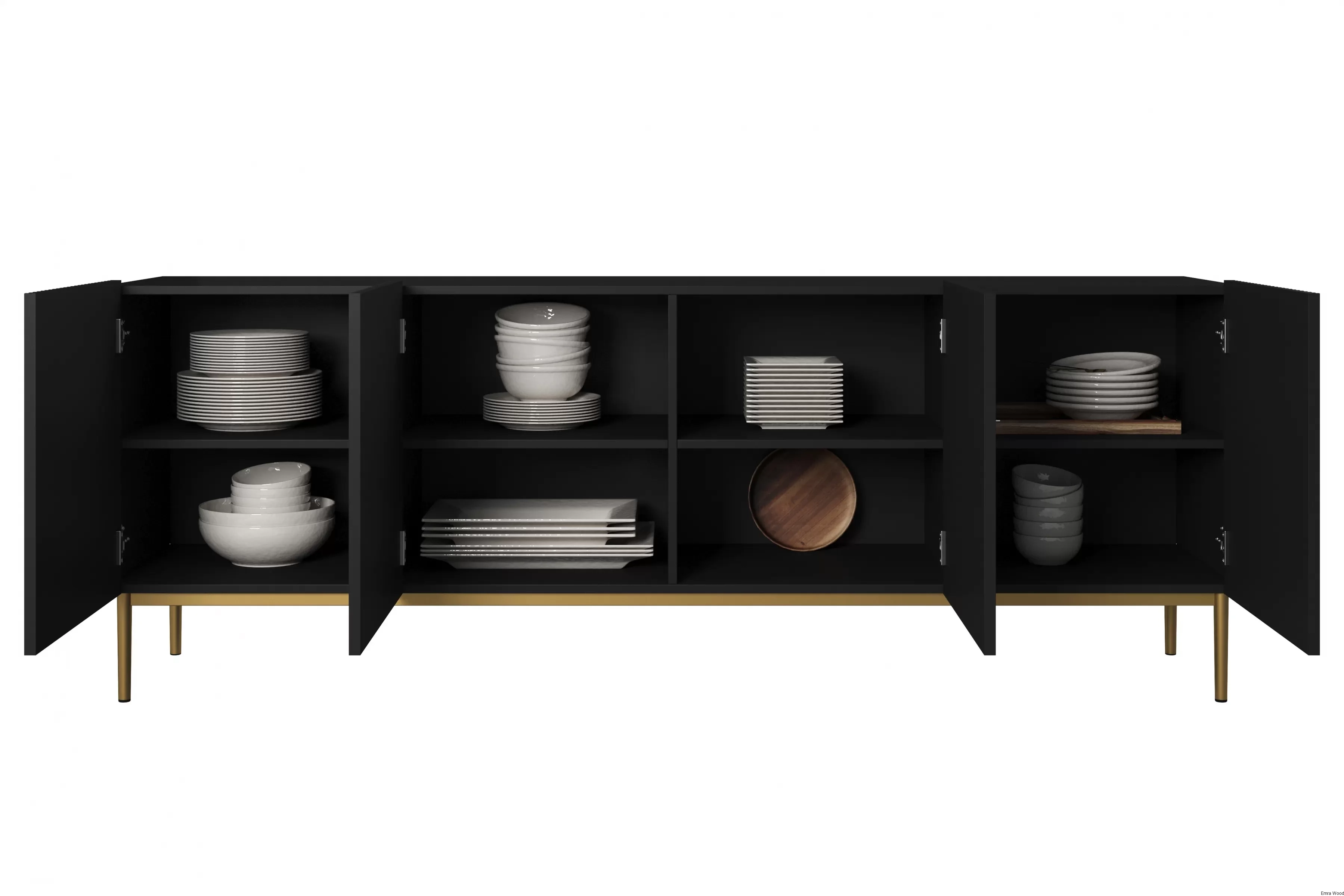 Szukasz eleganckiej komody, która doda klasy Twojemu wnętrzu? Poznaj Komodę Nicole 200 cm - czarny mat / złote nóżki.