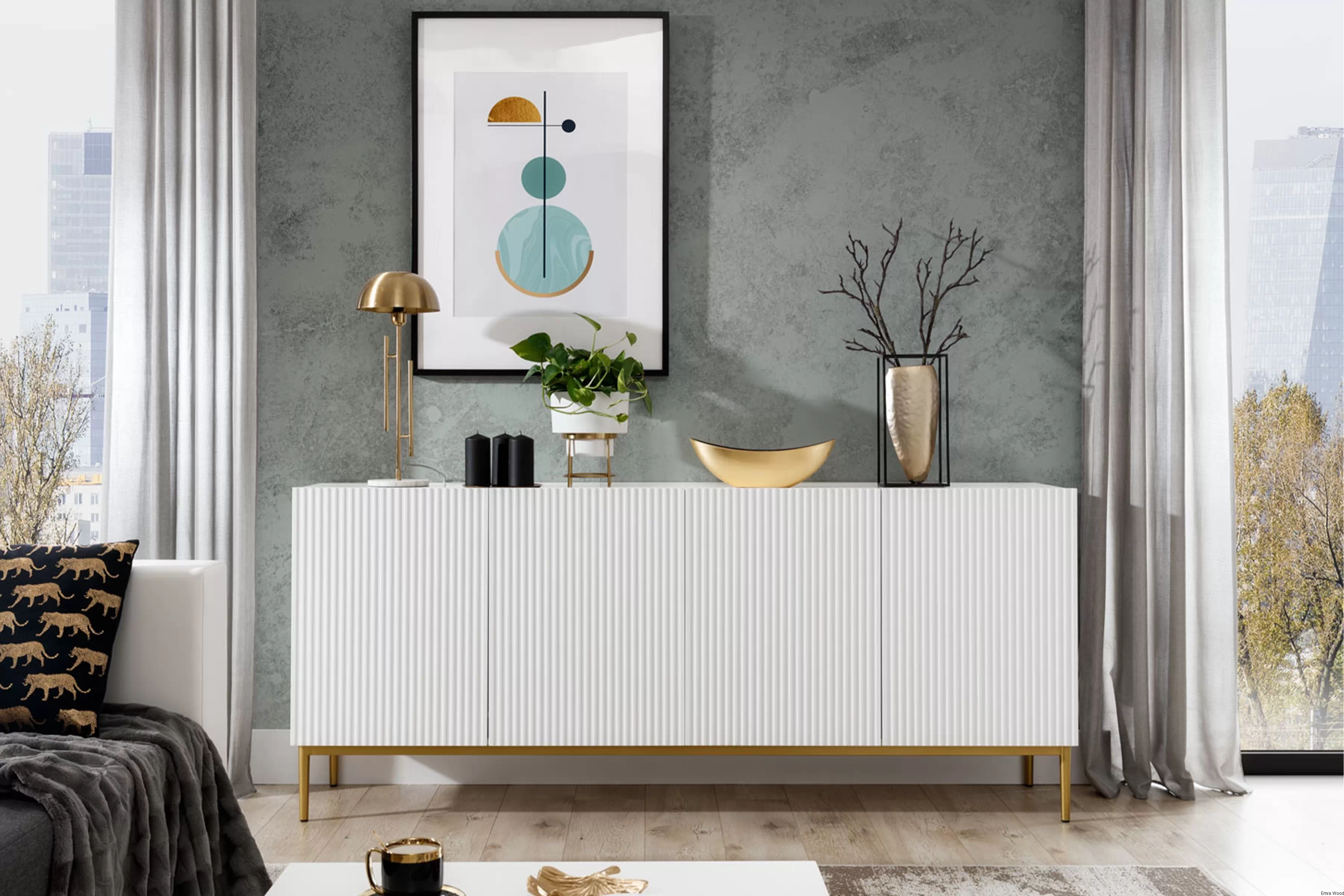 Dzięki swojemu uniwersalnemu designowi komoda doskonale komponuje się z różnymi stylami wnętrzarskimi, od nowoczesnego po glamour. Idealnie sprawdzi się zarówno w salonie, jak i w sypialni czy jadalni, dodając elegancji i klasy każdemu pomieszczeniu. Złote nóżki świetnie współgrają z dodatkami w ciepłych tonacjach, tworząc harmonijną całość.