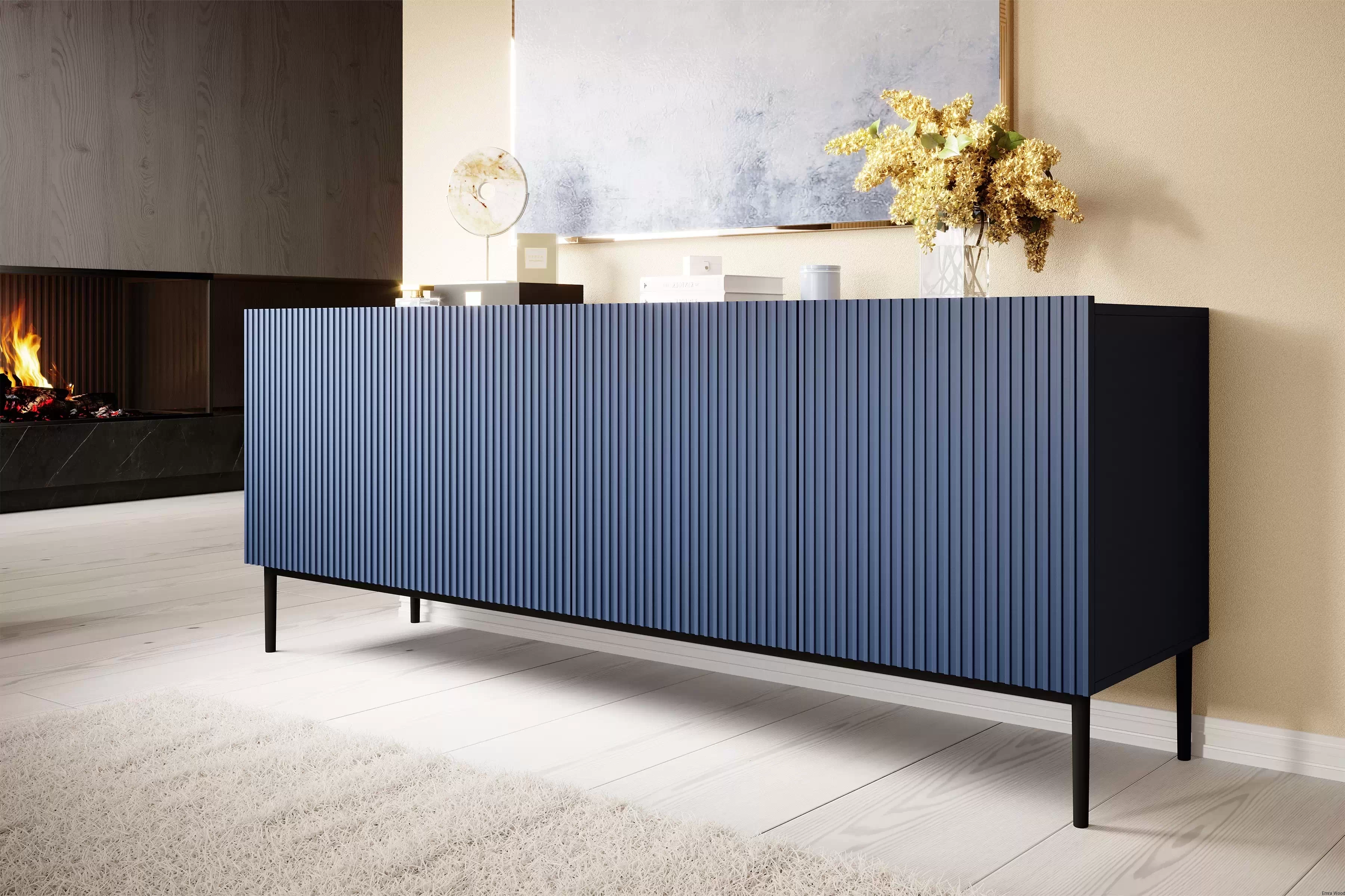 Jej wyjątkowy, granatowy kolor z matowym wykończeniem doda Twojemu wnętrzu elegancji i nowoczesności. Czarne, metalowe nóżki podkreślają jej unikalny charakter.