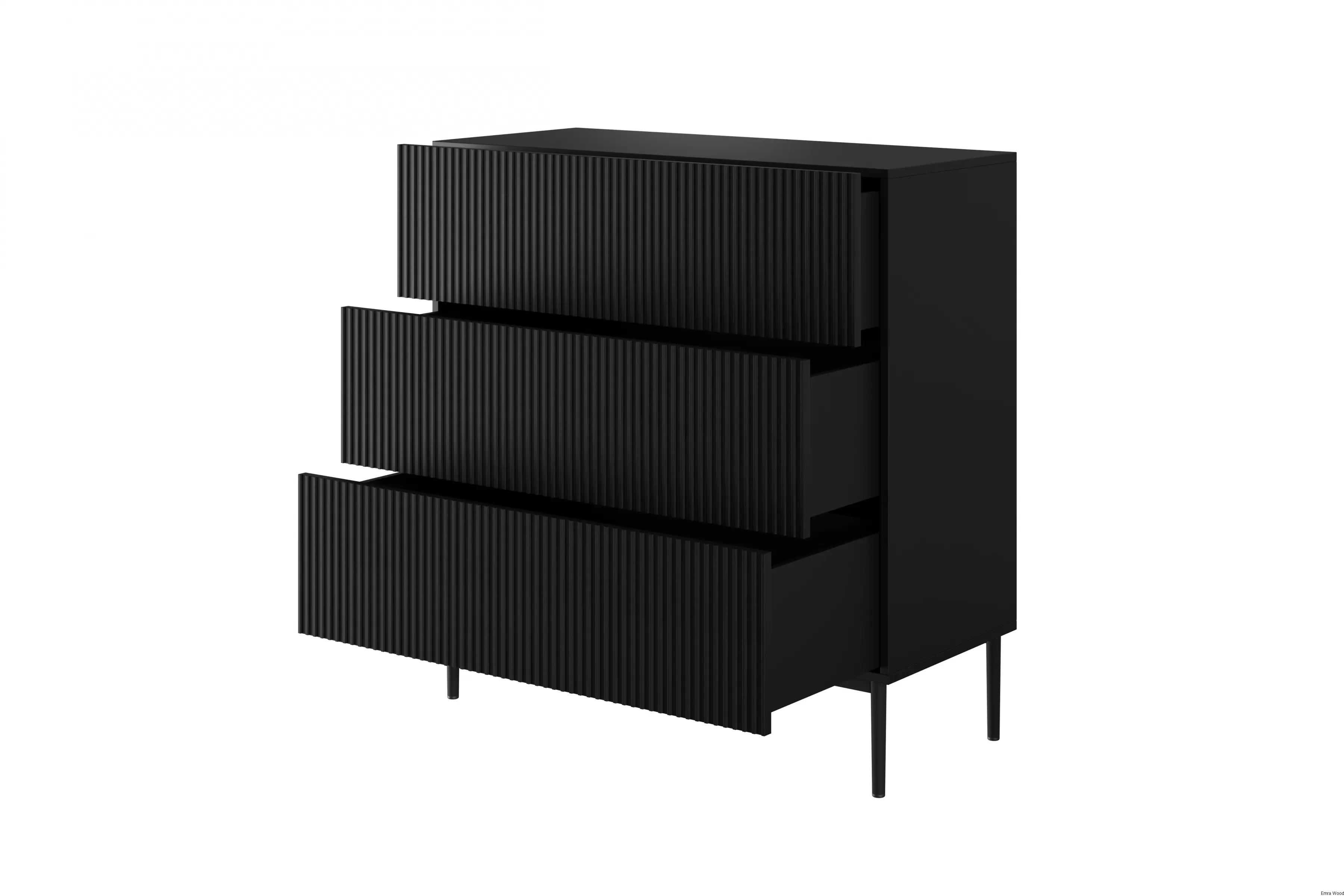 Ze względu na uniwersalny design, komoda Nicole doskonale sprawdzi się w różnych stylach wnętrz - od industrialnych, przez minimalistyczne, aż po nowoczesne. Czarny kolor komody doskonale skomponuje się z innymi meblami, tworząc harmonijną całość.