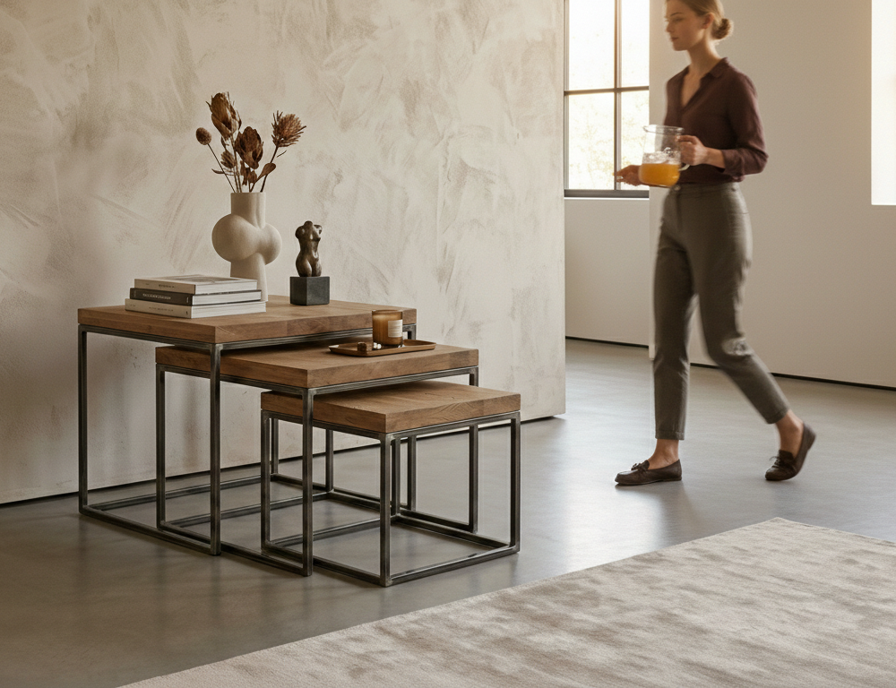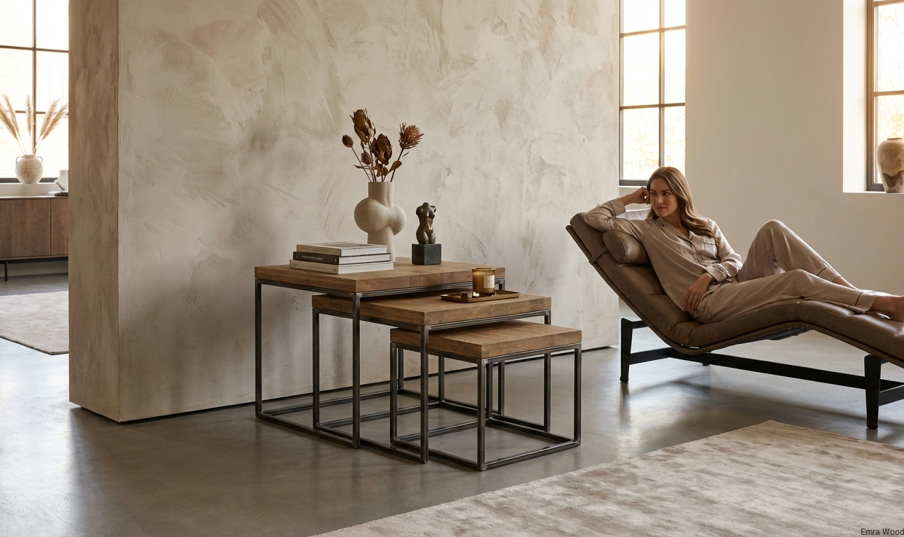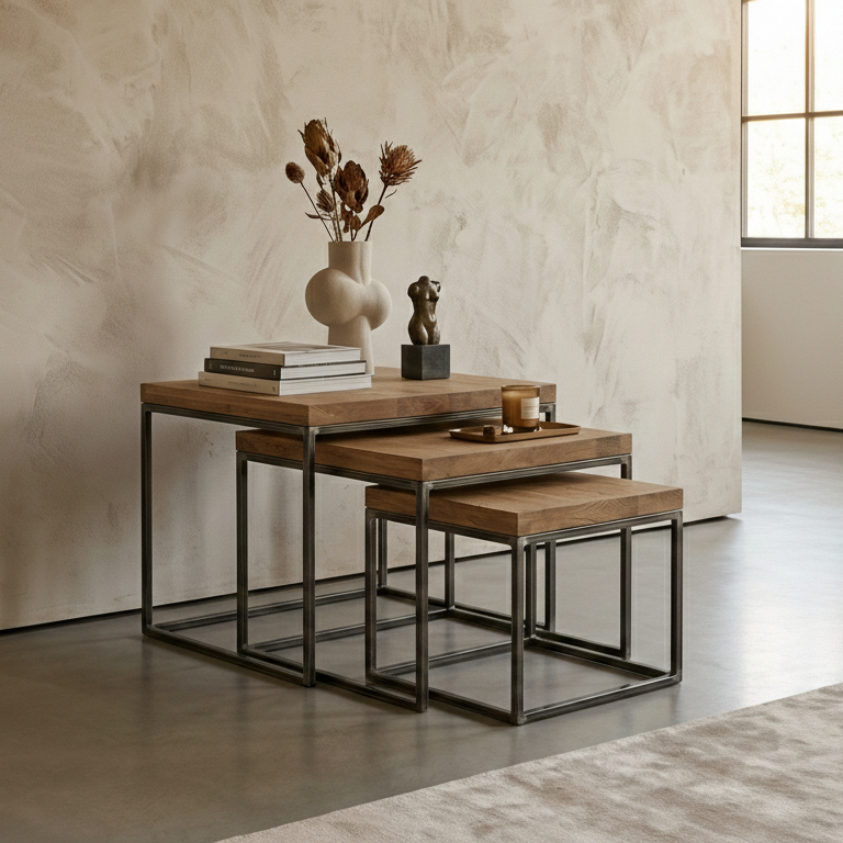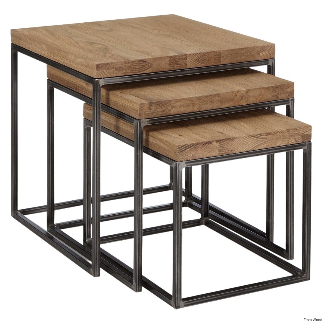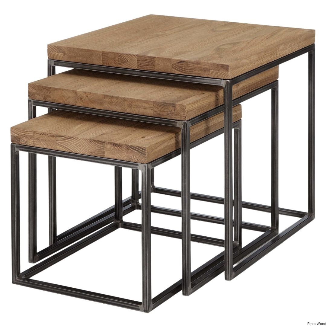 STOLIK KAWOWY / Stelaż Stal Naturalna / Blat Lite Drewno DĄB model STK-149