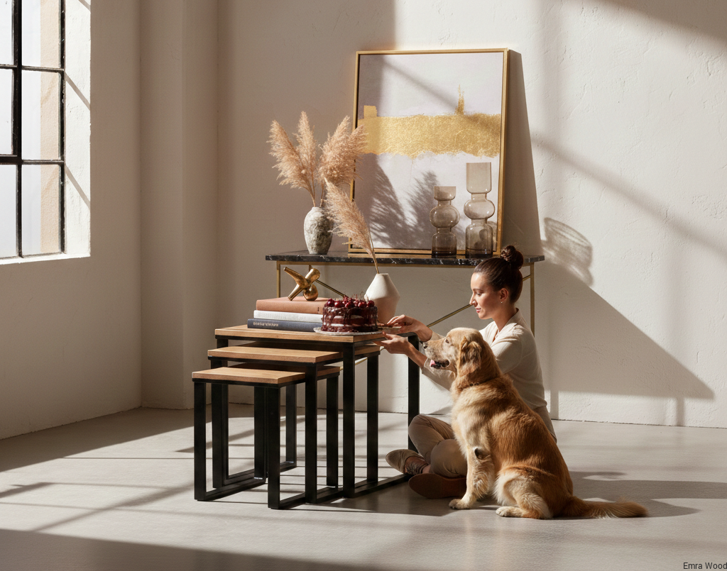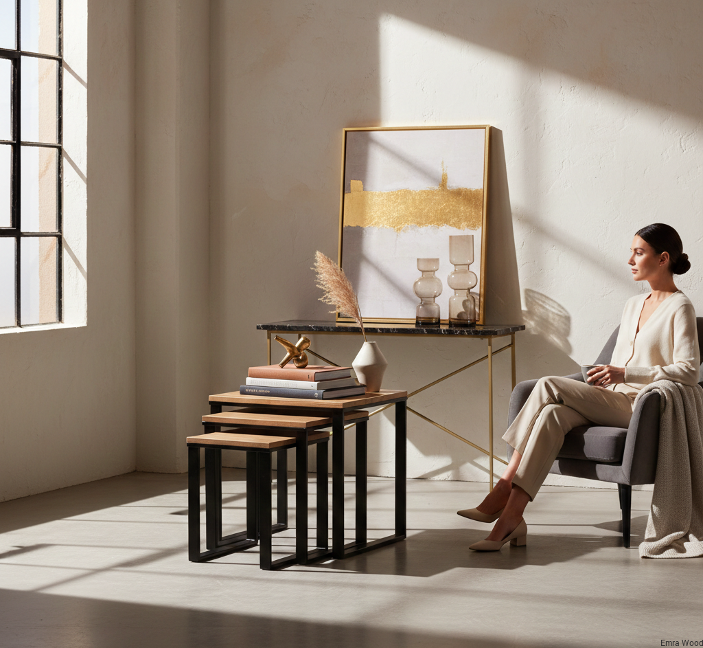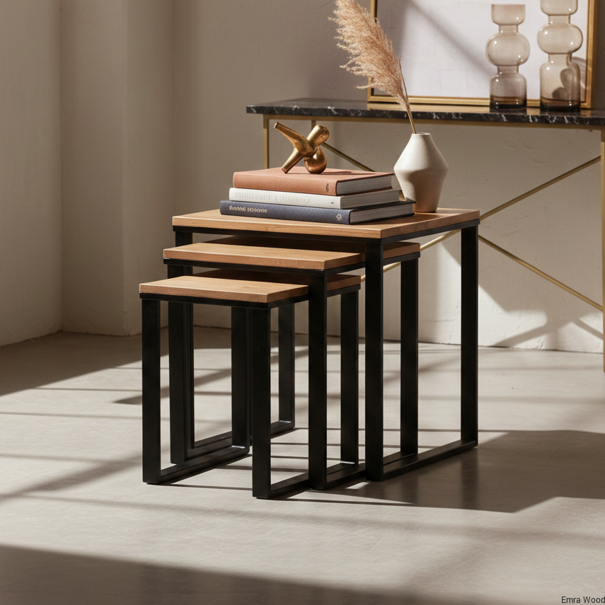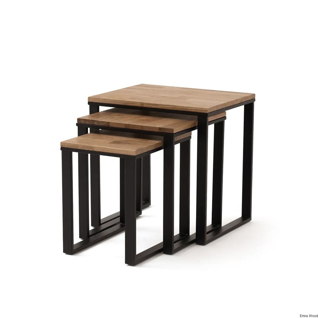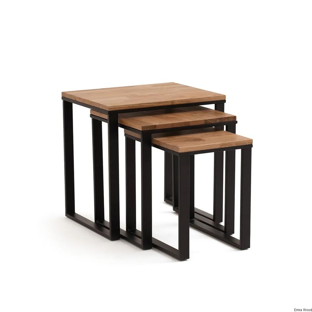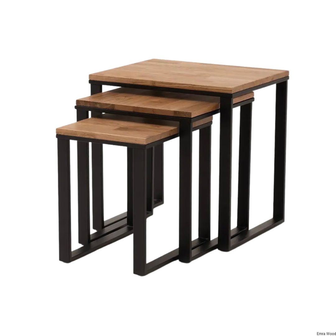 STOLIK KAWOWY / Stelaż Stal Czarna Malowana Proszkowo / Blat Lite Drewno DĄB model STK-150