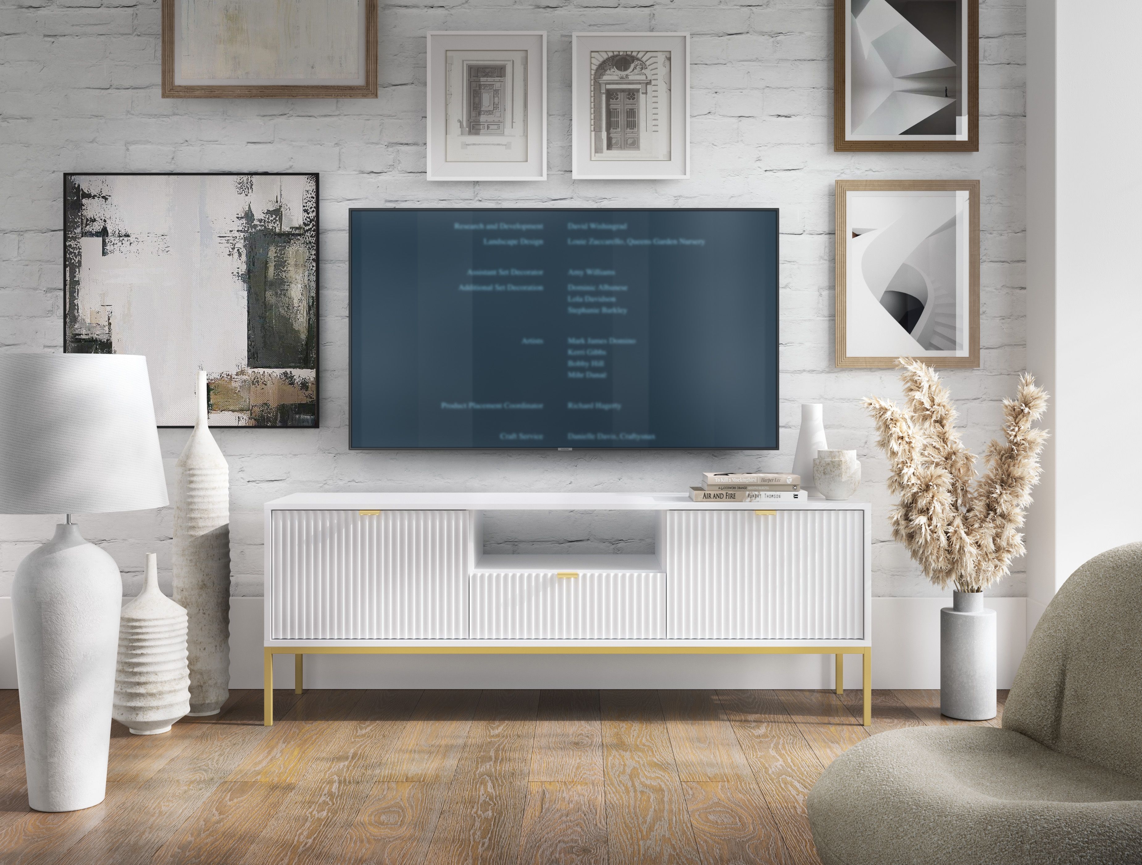 Szafka RTV Biało - Złota